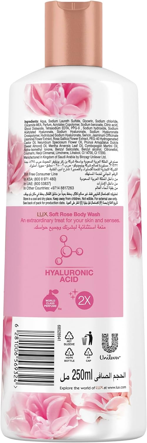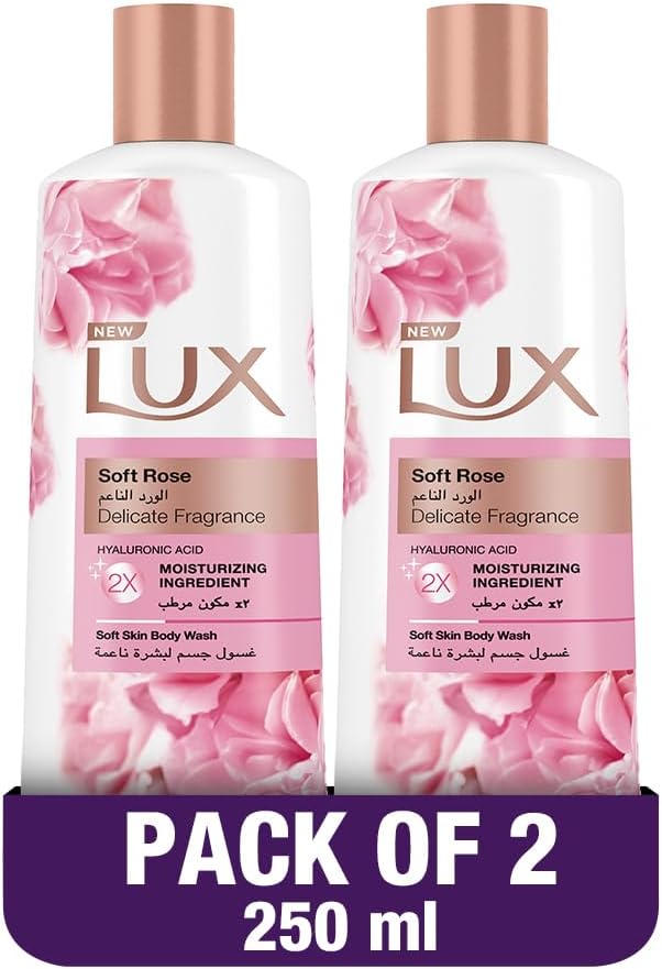 LUX Perfumed Body Wash, for all skin types, Soft Rose, 2x moisturising ingredients, 250ml x 2