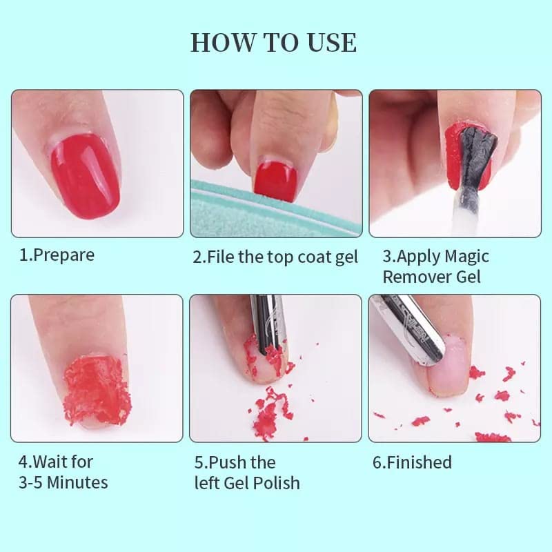 💧【Notes】AVOID APPLYING TO SKIN. Before remove the nail polish is recommended to first remove the seal with sand, so that it will burst automatically. If the sealing layer is not removed, it will not be automatically exploded and it will take longer to unload the nail. And it needs to be wiped with a paper towel.