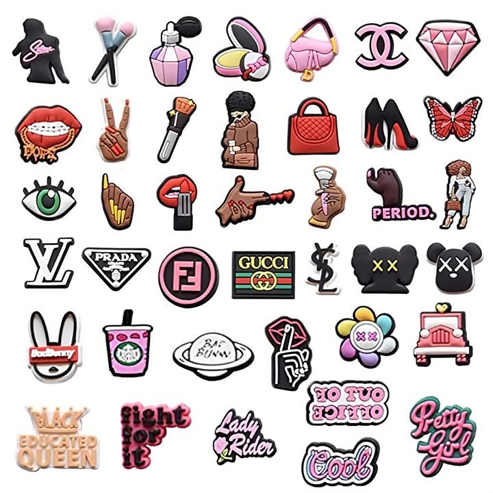 Features: : 40 cute pink shoes decoration charms as picture, perfect quantity to decorate your shoes clog sandals in a cool and attractive shape. : Vibrant and cute designs of lovely cute shoe decoration charms make your shoes more interesting fun and unique, YOU ARE THE BRIGHTEST GIRL GANG! :These fashion pink charms are made of high-quality environmentally PVC material, safe and non-toxic, no breaks easily and hardly deformed. : Very easy to install on, but not easy to fall off, so just have fun with these cute and cool shoe decoration charms wherever as you like. : MATHARAGO shoes decoration charms with different cute designs, are great for all kinds of parties, they will love picking out their faves and had tons of fun with them. Specifications: Material: PVC Color: Color Item Weight: 2.82oz/80g Size: 14.5*11.1*2cm/ 5.71*4.37*0.79inches Package includes: Package size: 14.5*11.1*2cm/ 5.71*4.37*0.79inches Shipping weight:2.82oz/80g