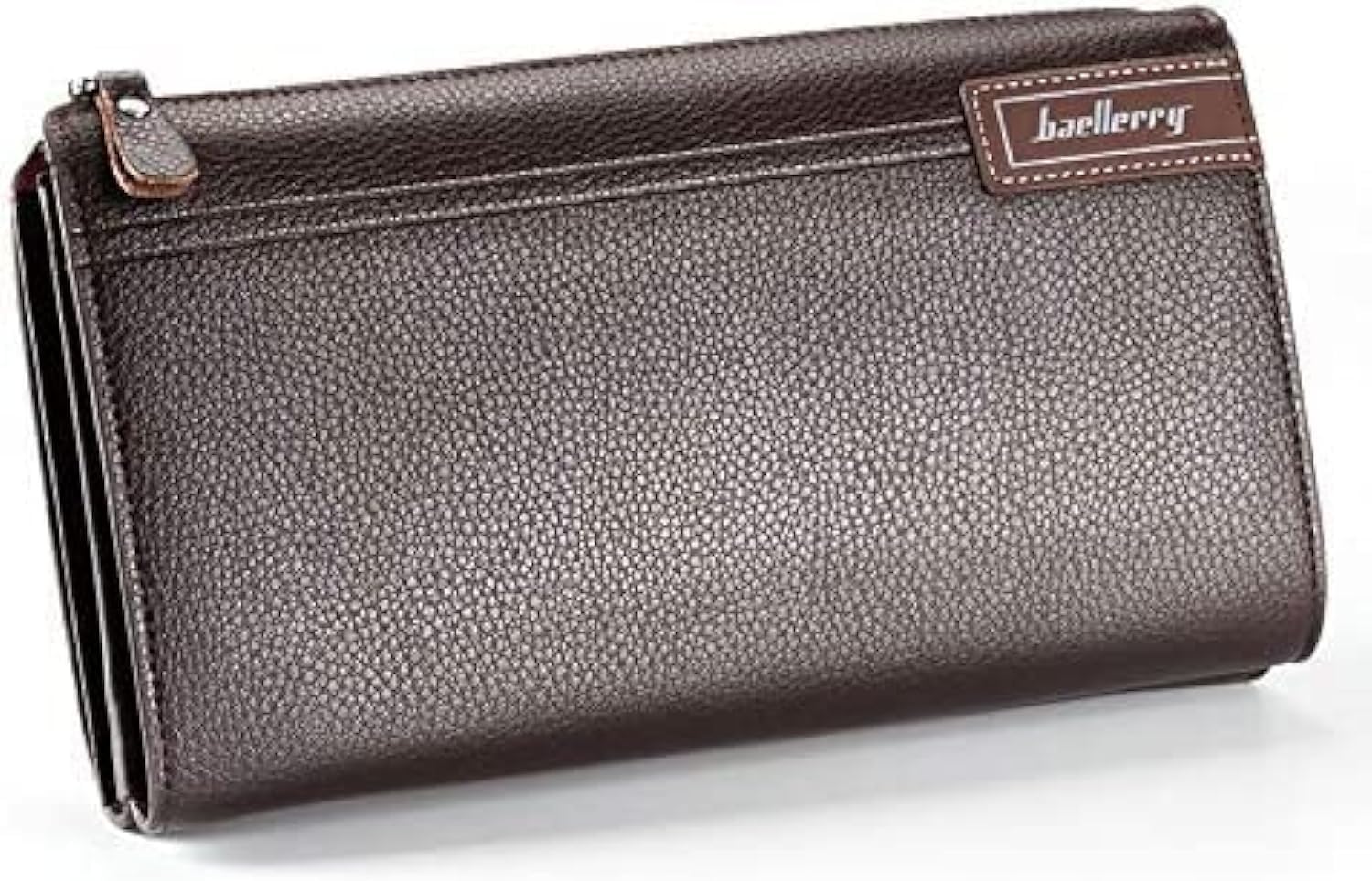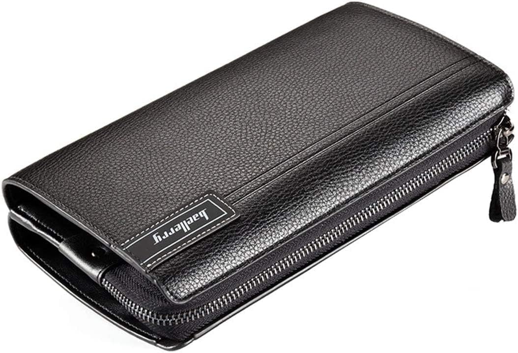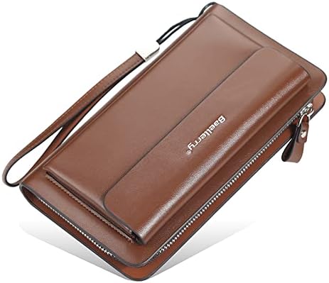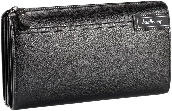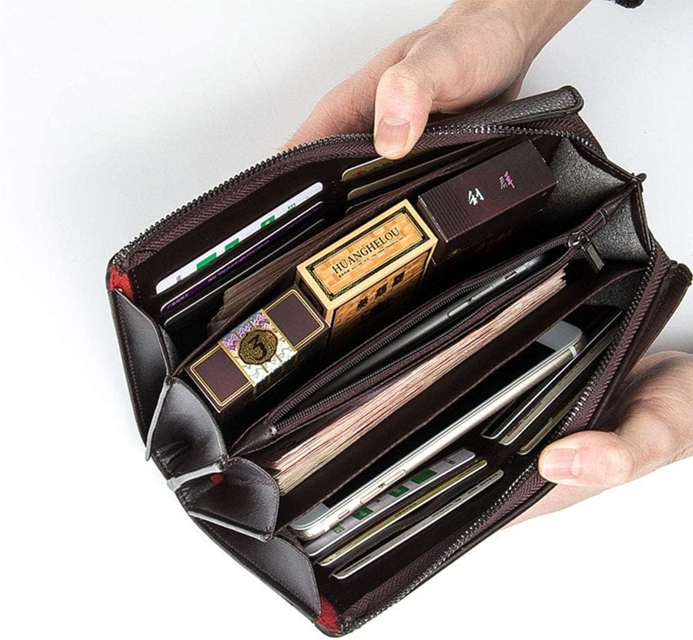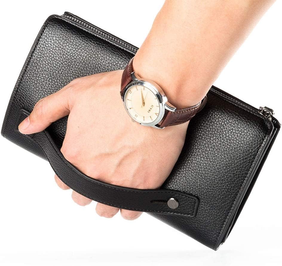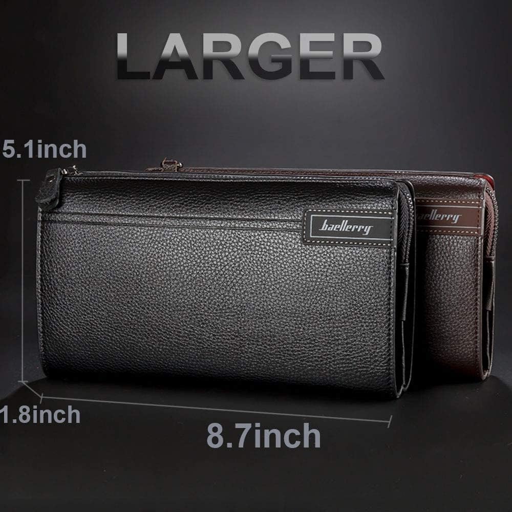 Mens Long Leather Cellphone Clutch Wallet Purse for Men Large Travel Business Hand Bag Cell Phone Holster Card Holder Case Gift for Father Son Husband Boyfriend (BLACK)