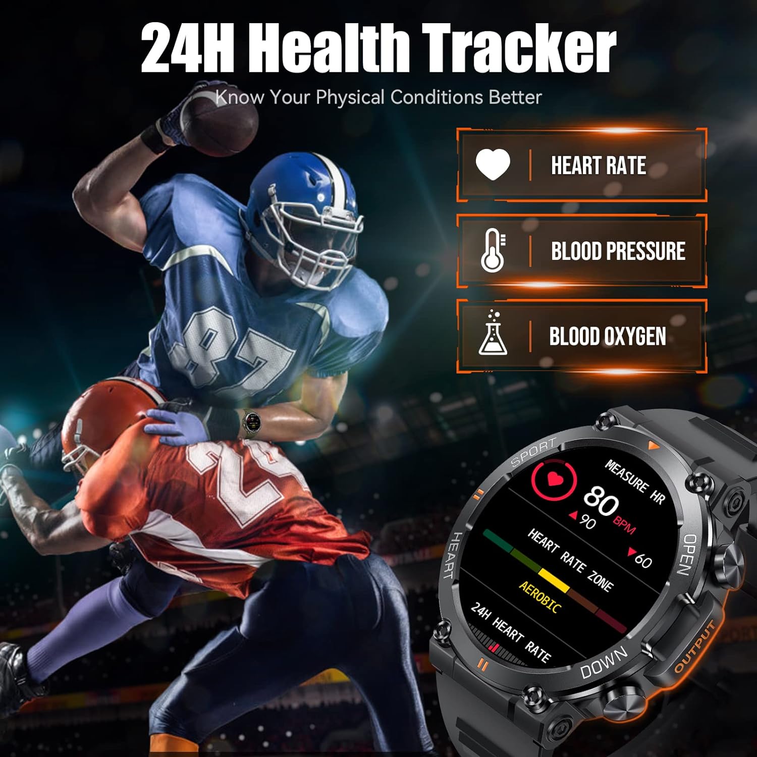 Military Smart Watches for Men Make Call 1.39" HD Big Screen Fitness Tracker Rugged Tactical Smartwatch Compatible with iPhone Samsung Android Phones Heart Rate Sleep Monitor Sports Watch