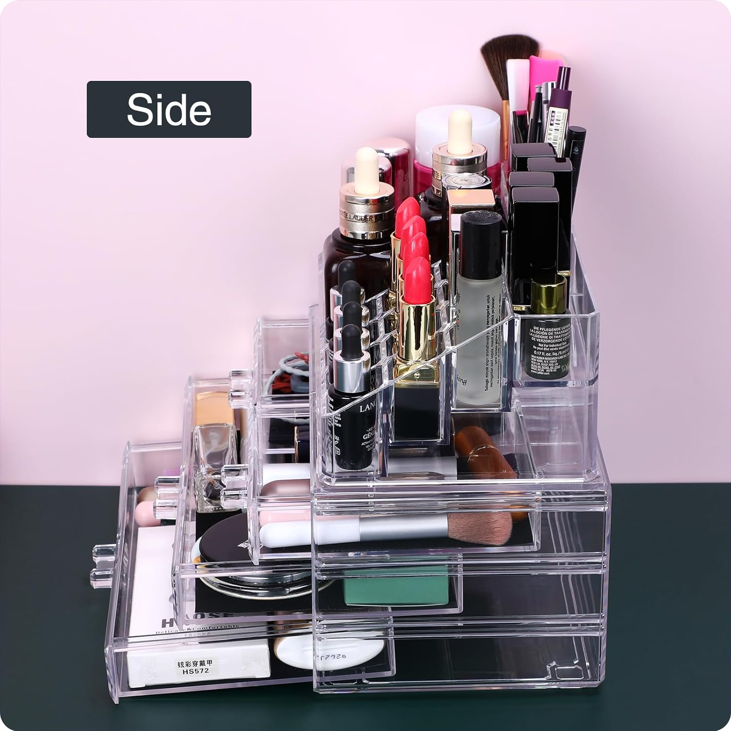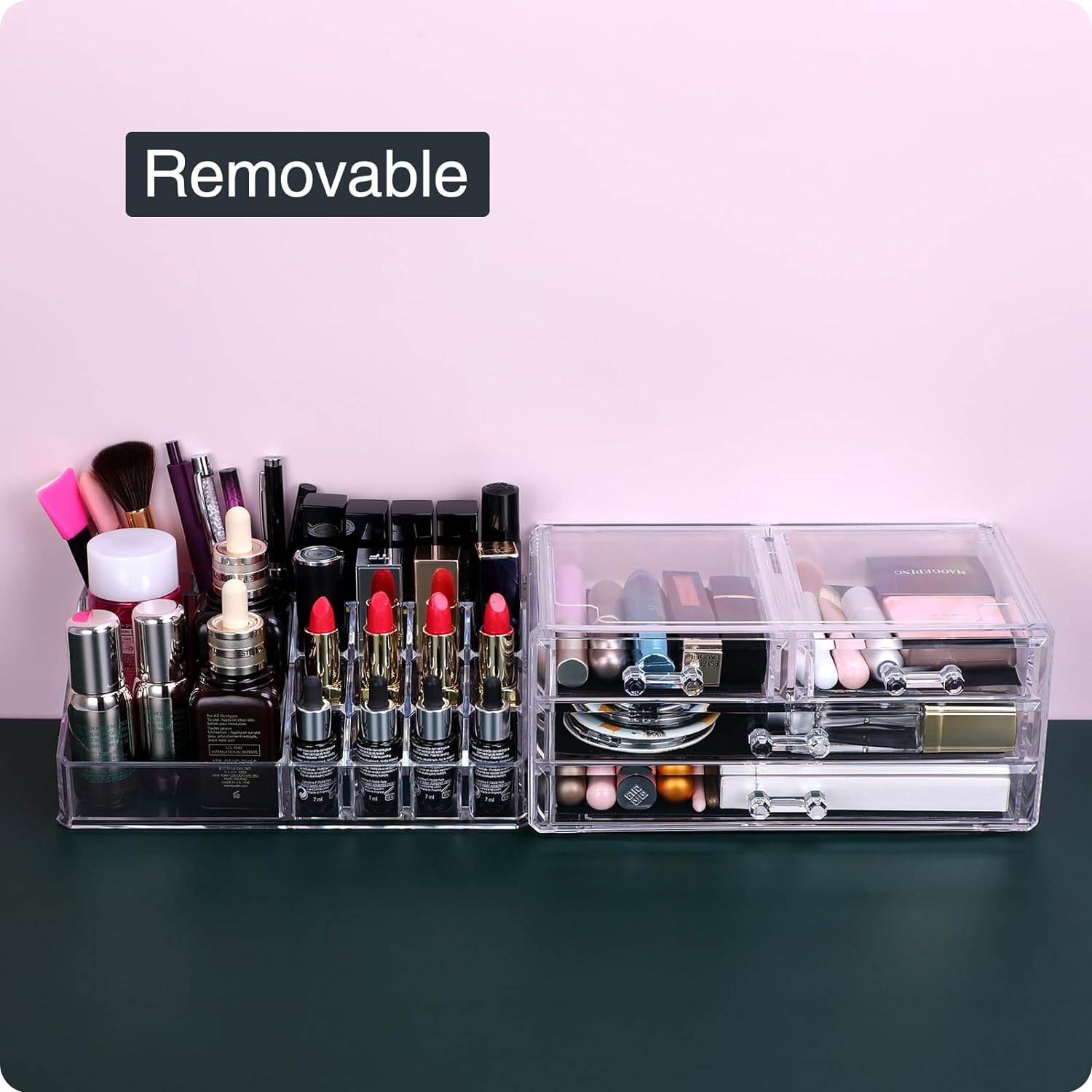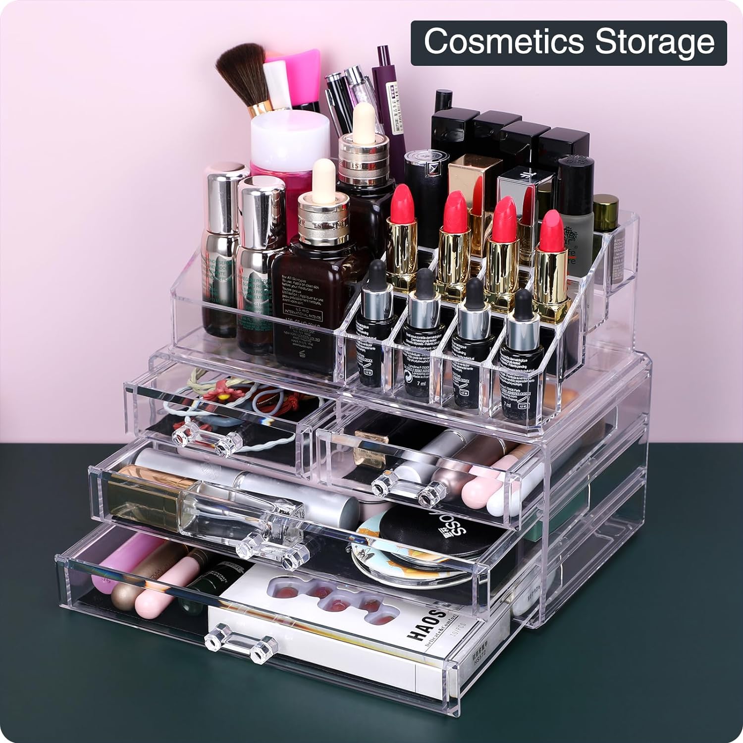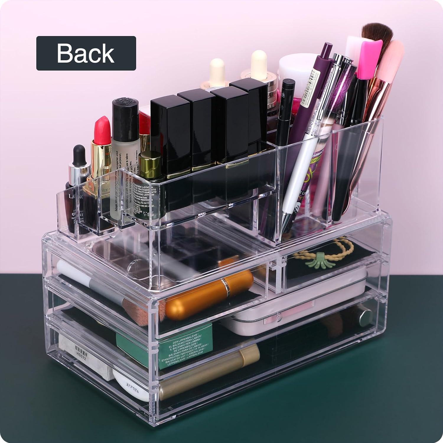❤DISASSEMBLY AND ASSEMBLY:The two components can be used separately or stacked together to save more desktop space. To store most cosmetics, perfumes, contact lenses, nail tools, false eyelashes and your jewelry, etc.