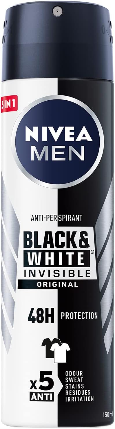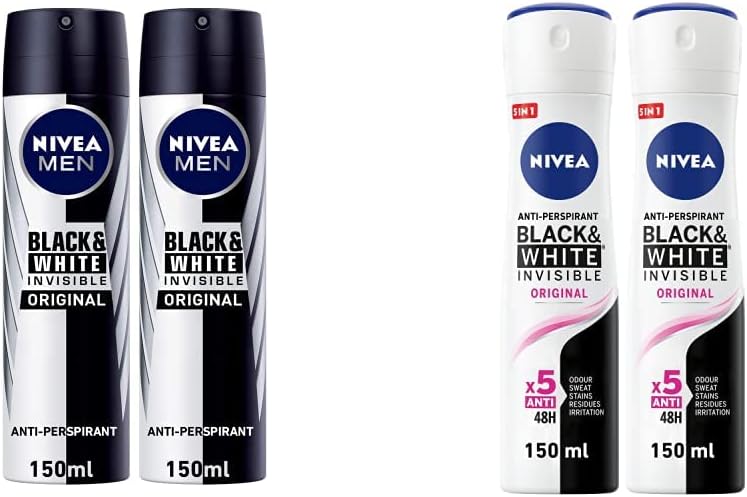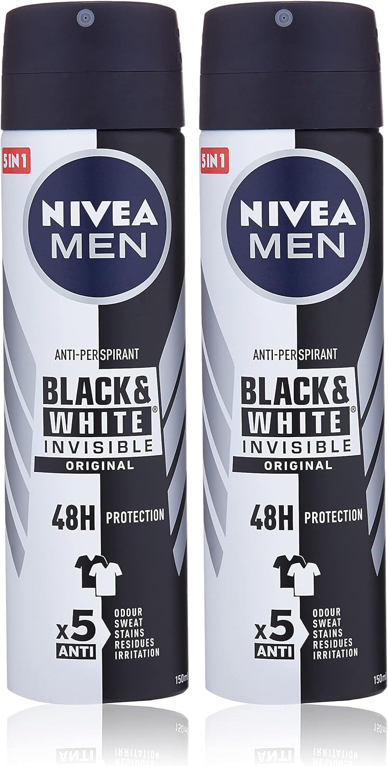 NIVEA MEN Antiperspirant Spray for Men, Black & White Invisible Protection Original, 2x150ml