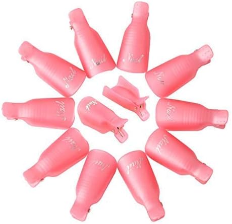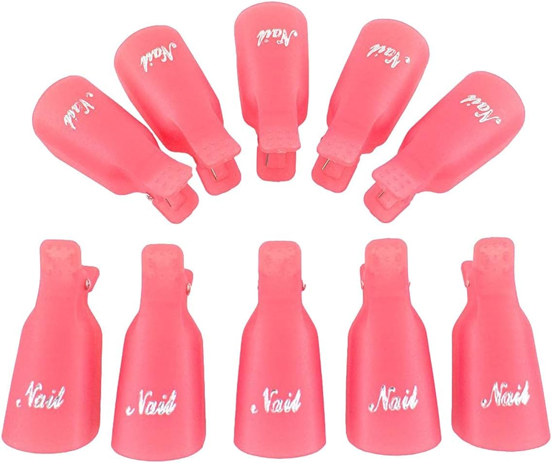 ORiTi 10PC Plastic Acrylic Nail Art Soak Off Cap Clip UV Gel Polish Remover Wrap Tool (PINK)