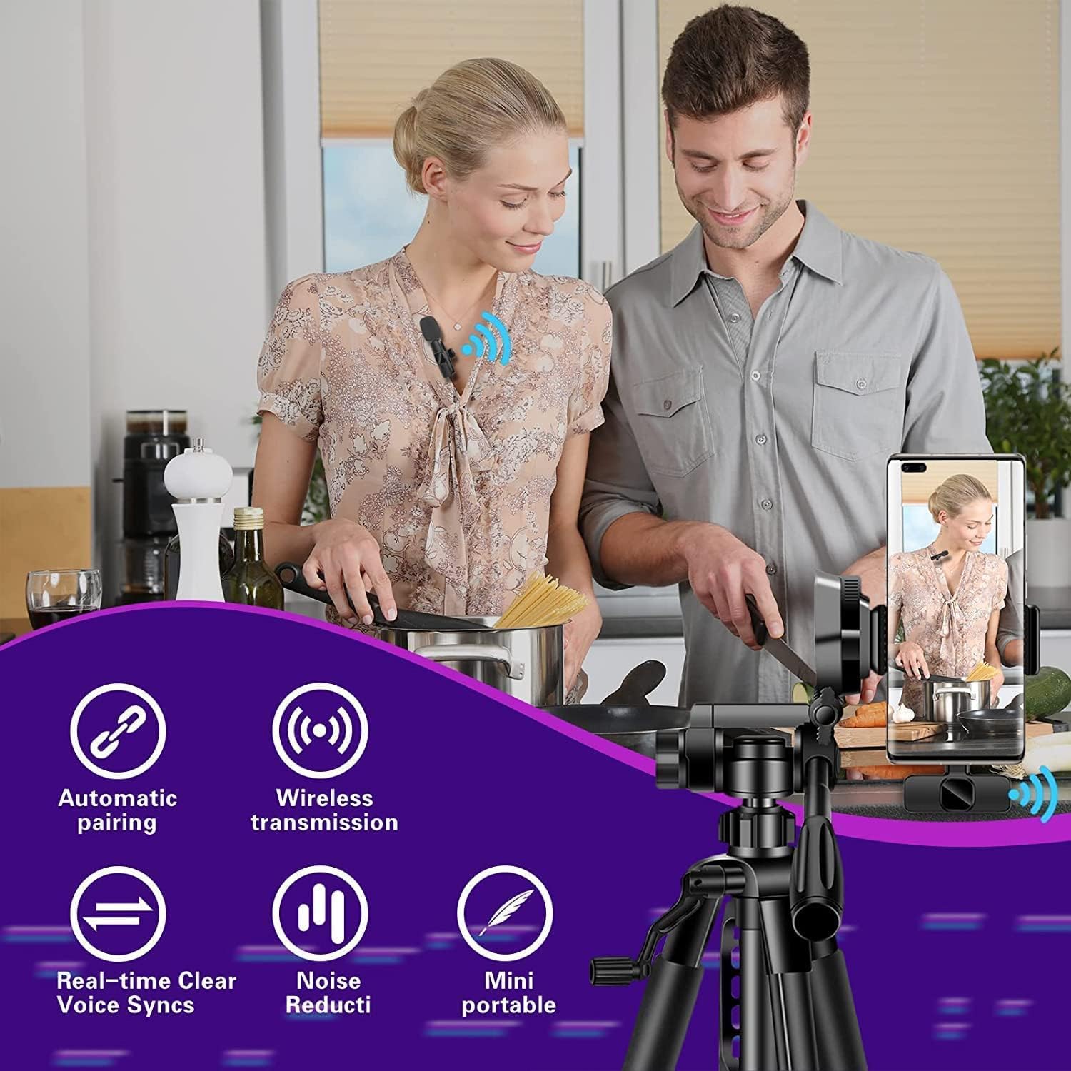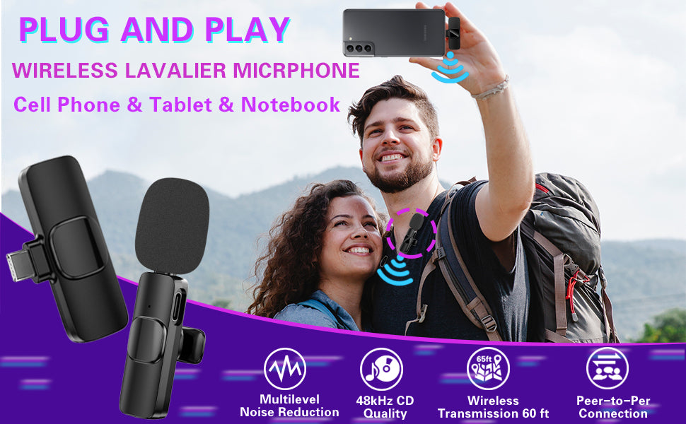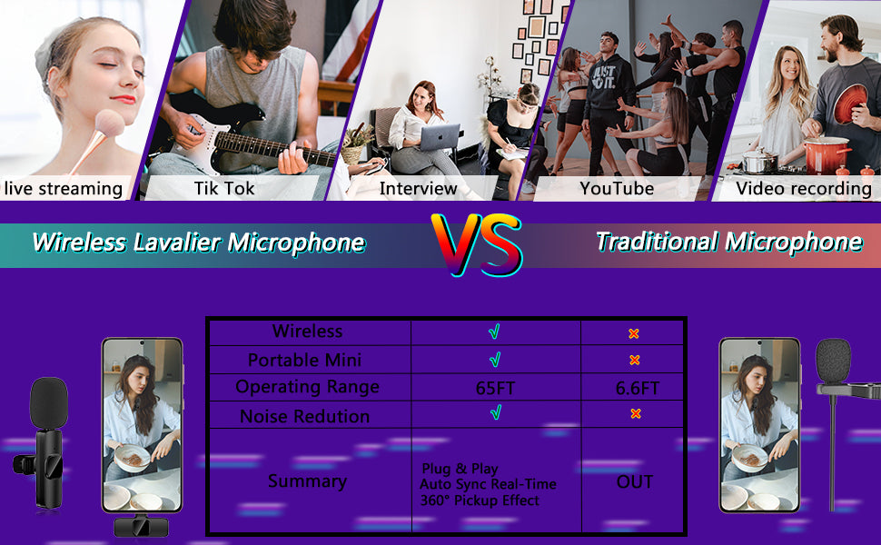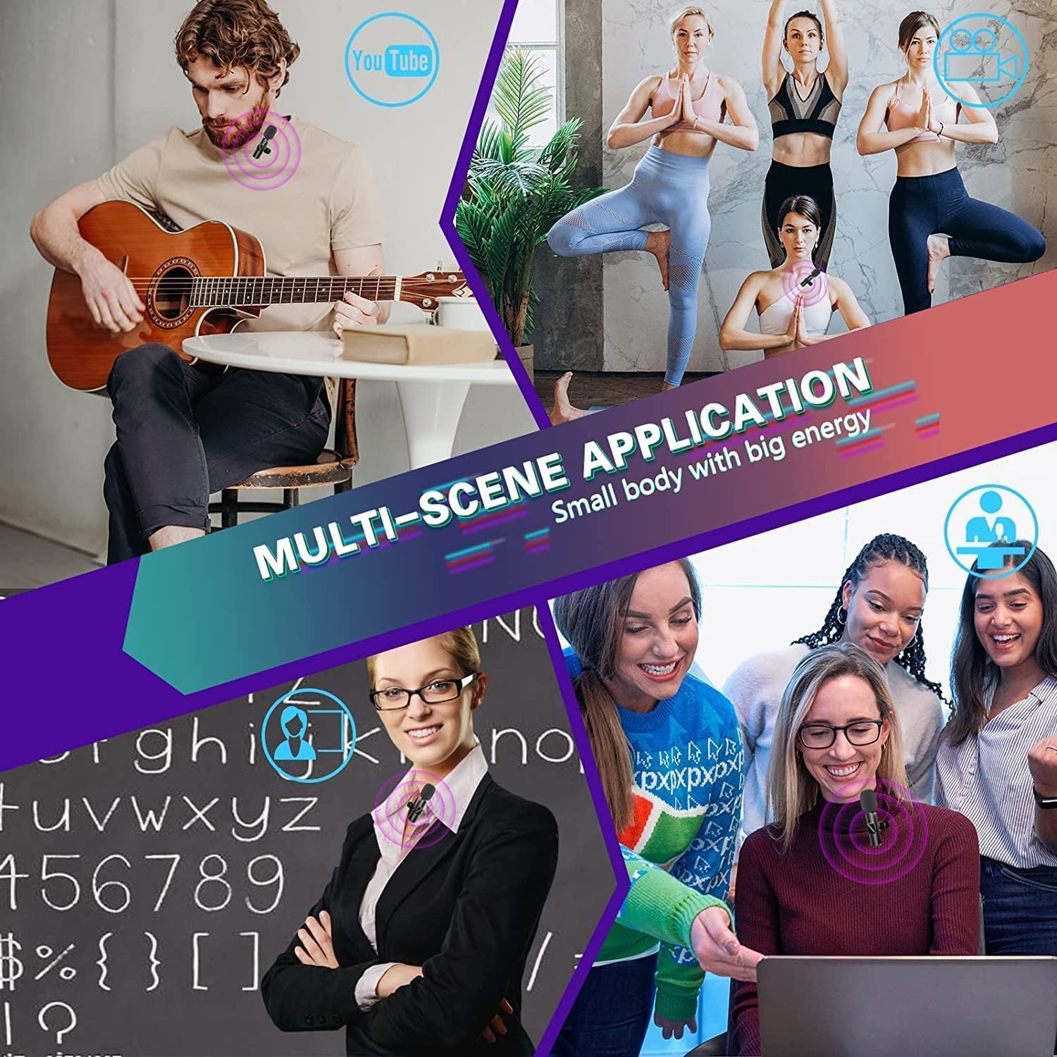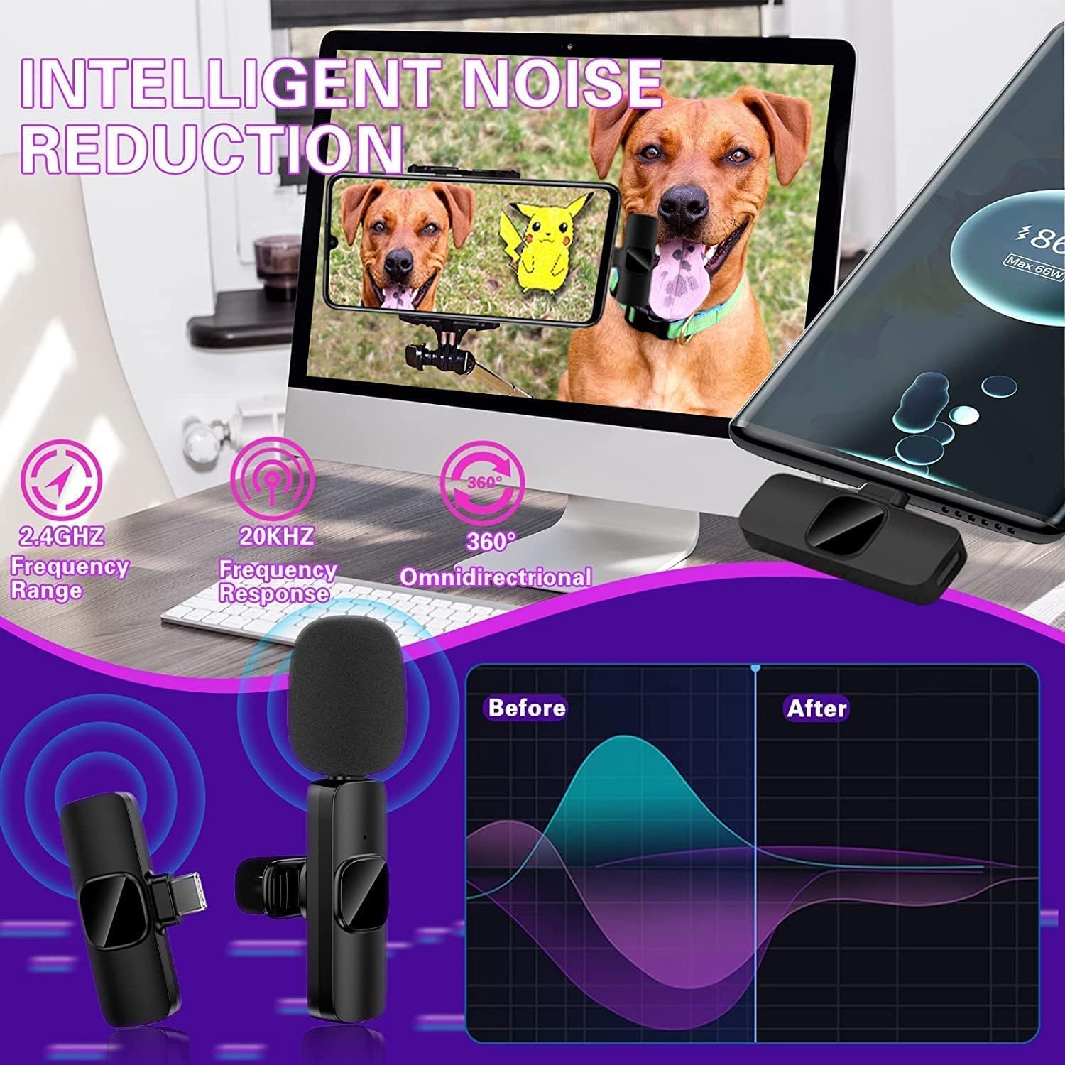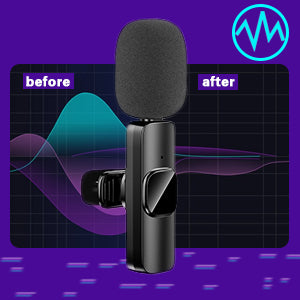 【SUPERIOR NOISE CANCELLATION & 360° PICKUP EFFECT】- Wireless lavalier microphones & systems use smart noise reduction technology, minimize ambient noise, keep the vocals carried through clearly even amid outdoor surrounding sound disturbance, which provides you and your followers a better experience in watching videos. The high-density spray-proof sponge can effectively reduce the noise generated by spraying wheat and improve the audio quality.