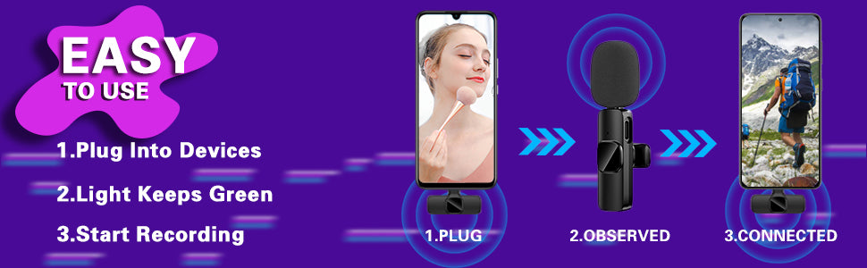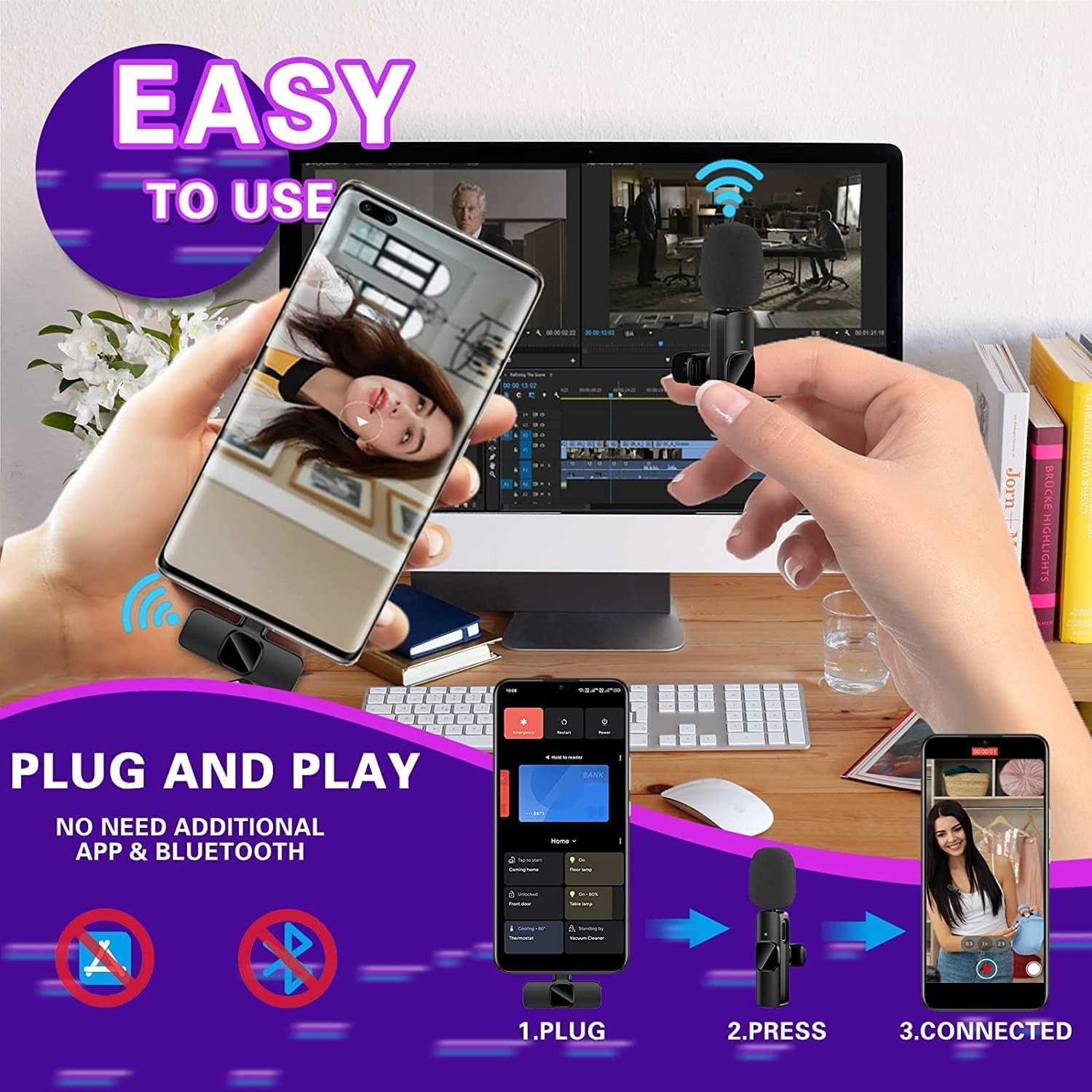【PLUG & PLAY AND AUTO PAIRING】- Wireless microphones with no App needed, the item includes a microphone and receiver(Lightning port), just clip the microphone to your collar and plug the receiver on your devices, they will automatically connect . Lapel microphone set applies to Vloggers, Bloggers, YouTubers, Podcasters, Interviewers, TikTok, FaceTime, and other video recording lovers.