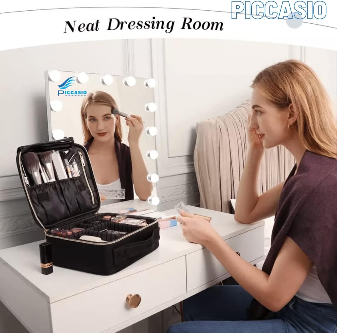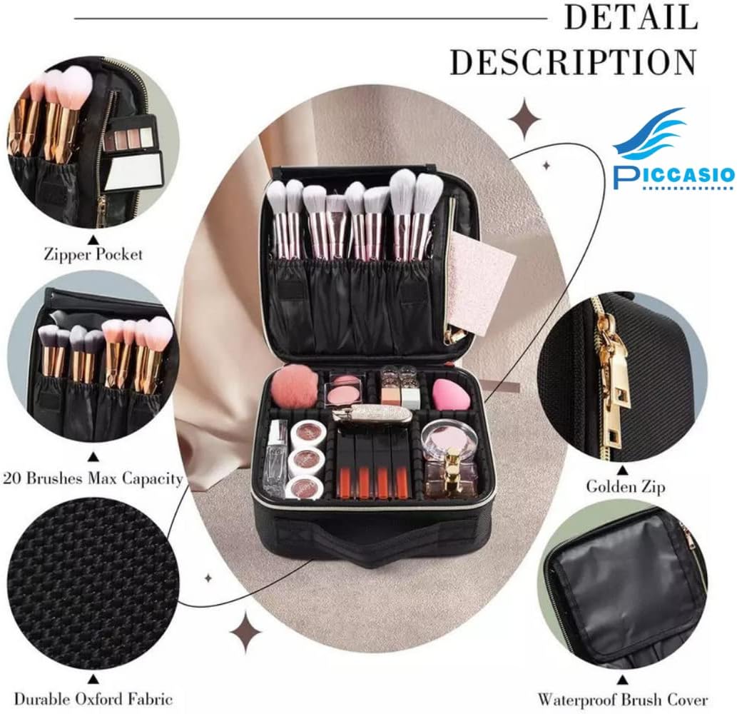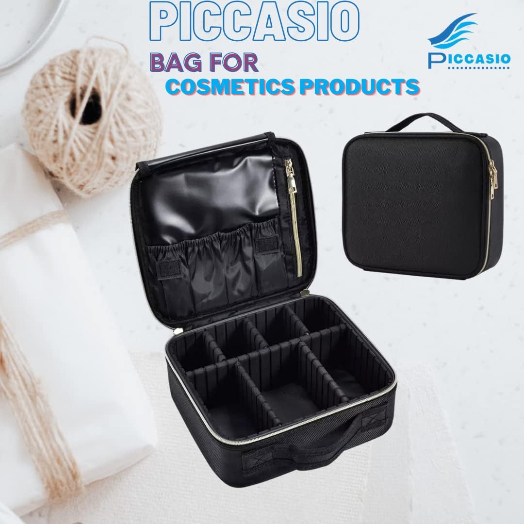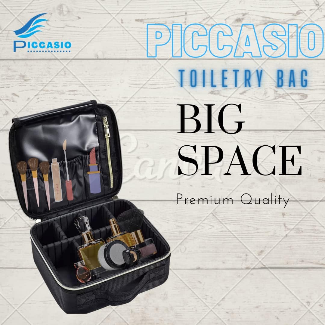 PICCASIO provides you Double Zipper Travel Toiletry Bag Makeup Organizer Train Travelling Case, Best for Brushes, Makeup Tools, and Accessories Storage. This Travel Cosmetic Case has removable dividers that can be combined and a mesh pocket to hold everything you need. To keep all makeup tools tidy and orderly, separate and organize all of your cosmetics, makeup tools, toiletry jewelry, and digital accessories in one portable make up case. With the mesh openings, you can easily see what's inside your large bags. Lining is wipeable. Zipper closure Clean with a mild detergent and a soft, damp cloth, then rinse thoroughly before lying flat to dry. This Set is made of sturdy cloth with a small mesh print and contains COMPARTMENTS. Ideal for makeup enthusiasts who also enjoy travelling comfortably. Also Ideal for packing in your luggage, purse, or tote bag. PICCASIO is dedicated to providing high-quality products at reasonable prices.