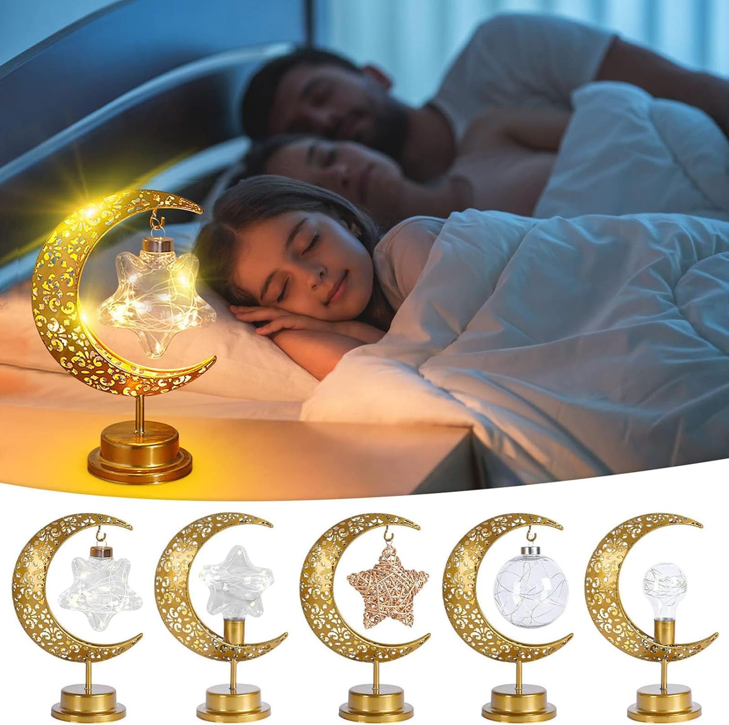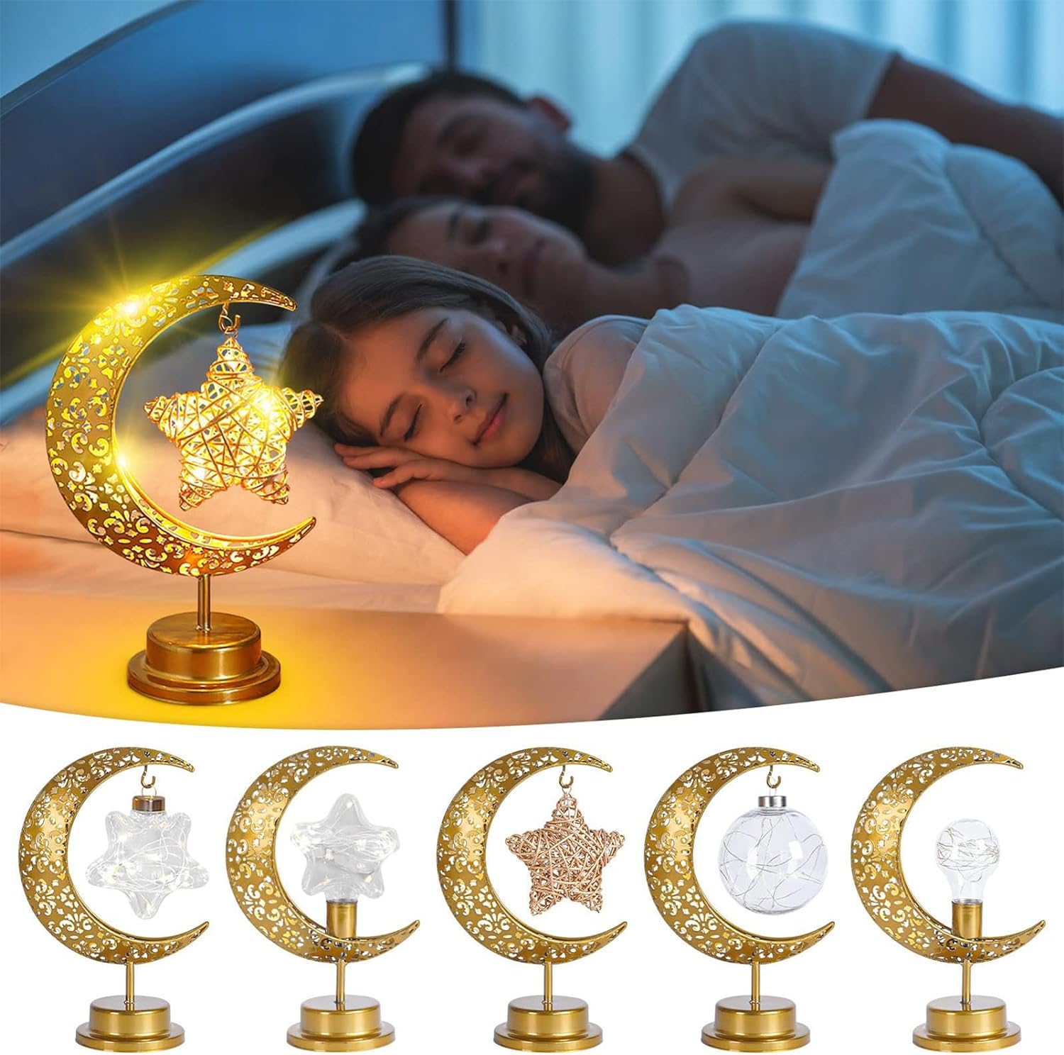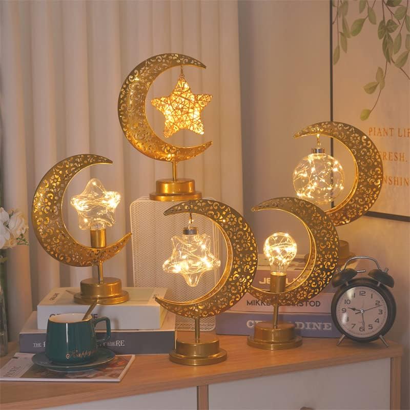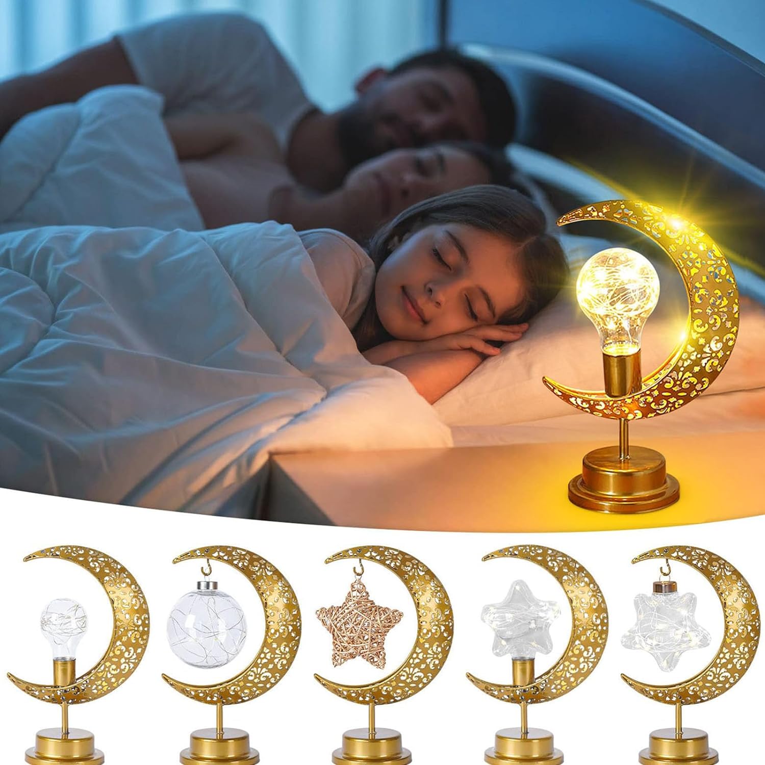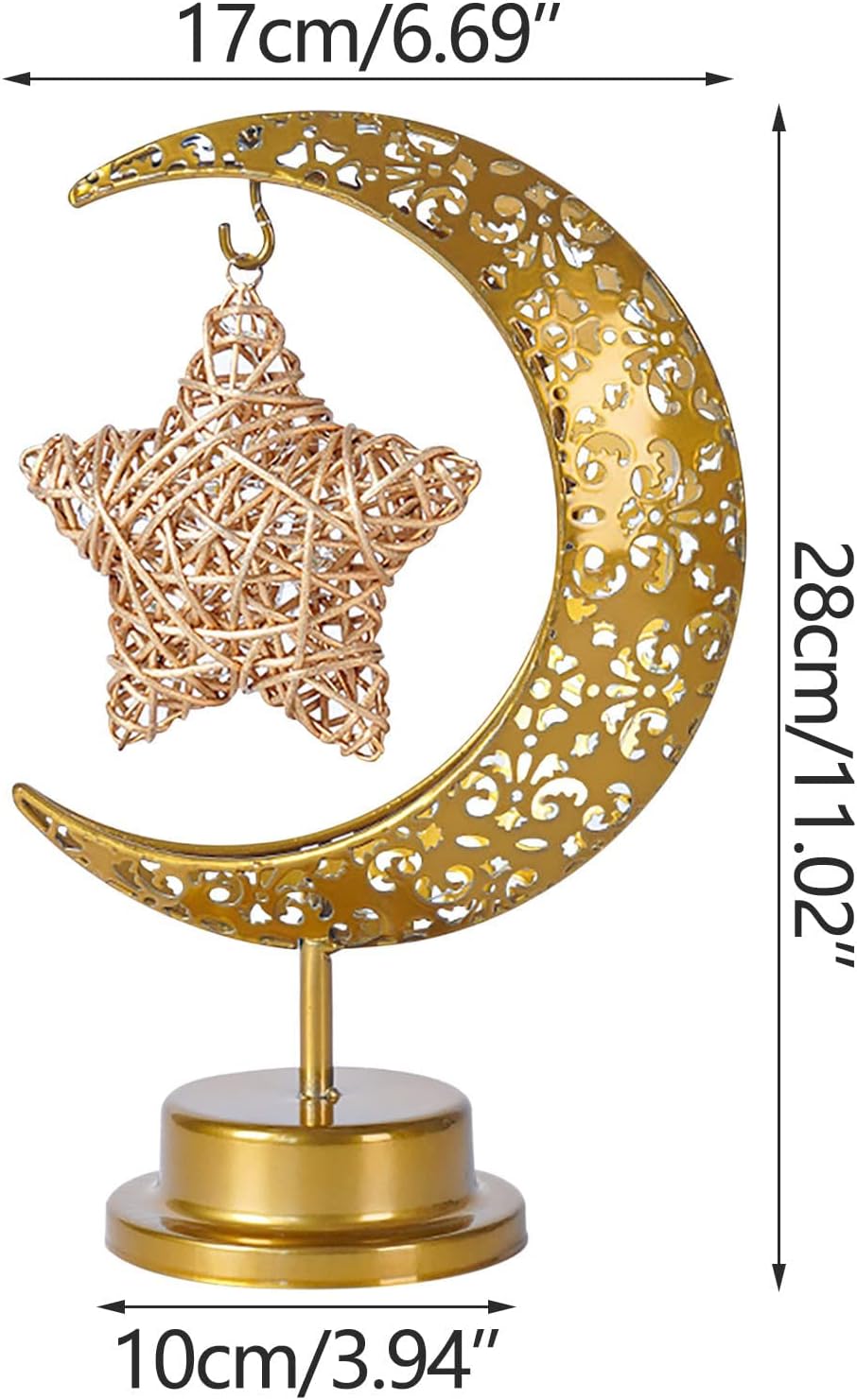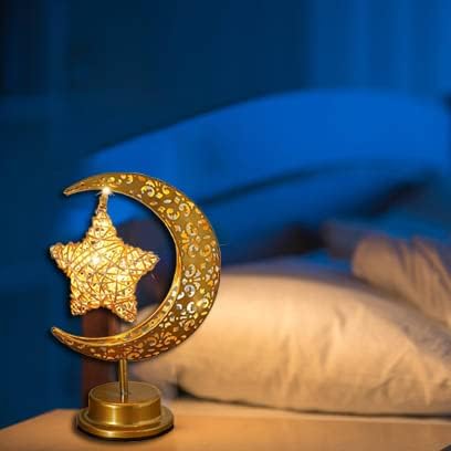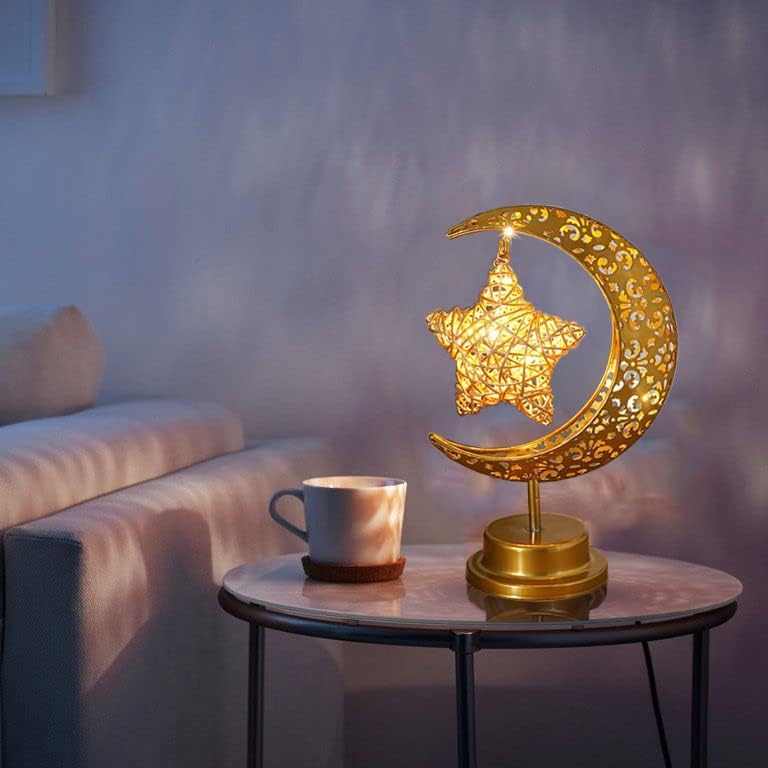 Ramadan Decorations LED Decorative Light Moon Star Table Lamp, Cordless Ramadan Moon Shape Desk Lamp, Bedside Table Night Light for Bedroom Dining Living Room Party Nursery Office Decor (Star-A)