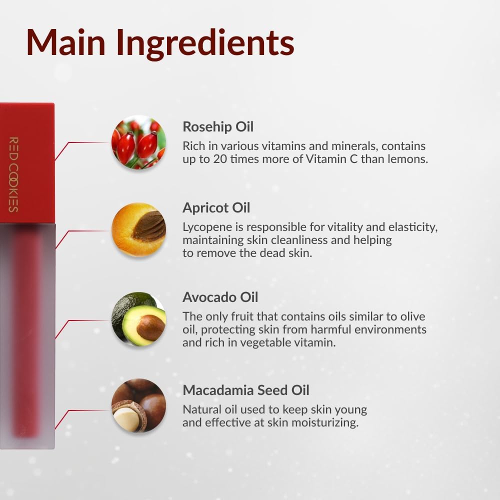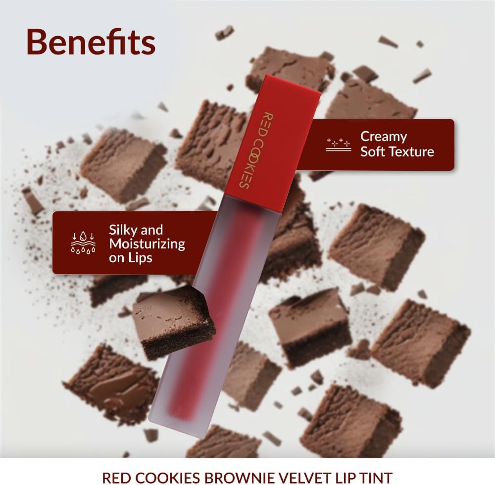 🇰🇷 Korean quality: Achieve a luxurious matte finish with the Red Cookies Brownie Velvet Lip Cream.