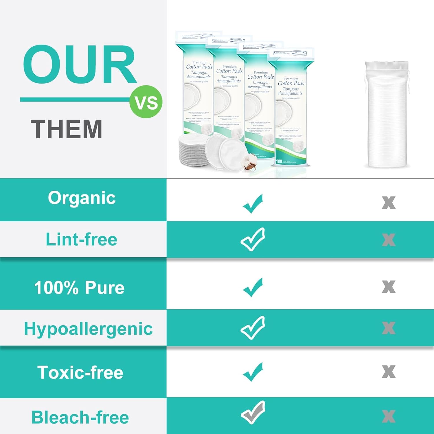 Remover Cotton Pads for face, Premium Cotton Rounds for Face, Makeup Remover Pads, Hypoallergenic, Lint-Free, 100% Pure Cotton Pads for Face Cleasing, Facial Toner, Nail Polish Remover(4 Pack)