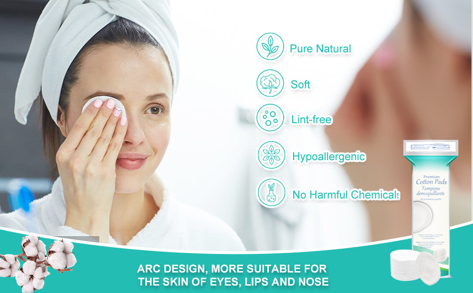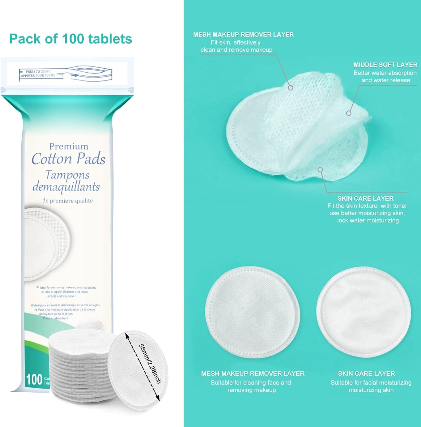 đŸ’…đŸ»ă€Lint-free Cotton Pads for Makeup Removal】The cotton makeup remover pads will not leave fibers on your face or lashes. Our 100% cotton rounds have a unique 2 sided and 3 layered structure consisting of the smooth non-woven cotton surfaces for makeup/nail polish removal, exfoliating and for skincare product application on the skin. And a middle layer that absorbs and releases liquids efficiently!