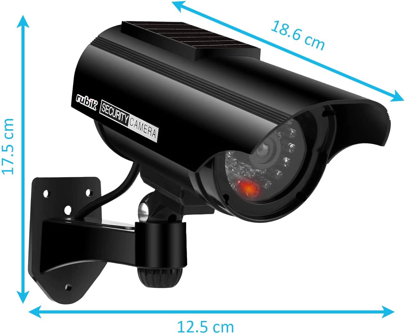 Rubik Dummy CCTV Security Camera Solar with Flashing LED Light, Adjustable Fake Surveillance Simulation Camera Security Indoor/Outdoor Bullet Camera with LED Light (Black)