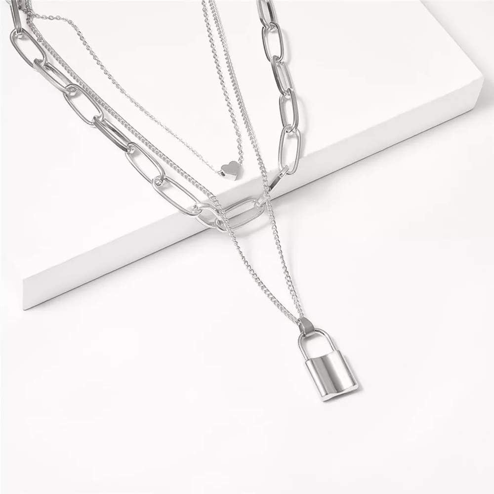Shining Diva Fashion Stylish Multilayer Chain Pendant Necklace for Women and Girls (12475np), silver