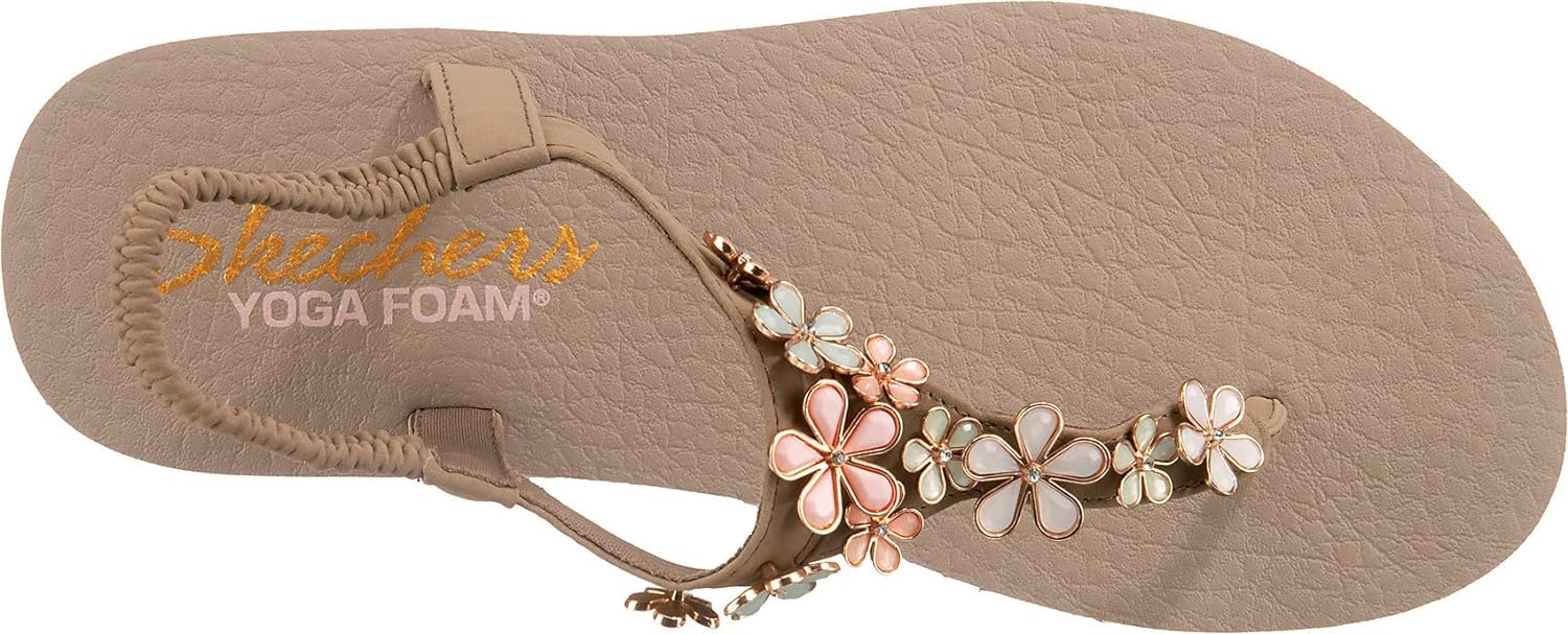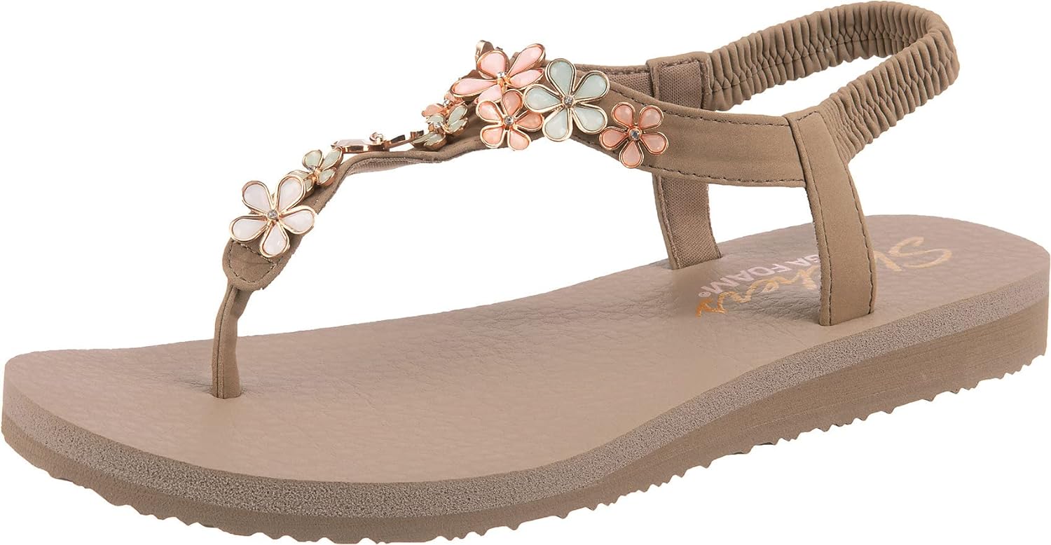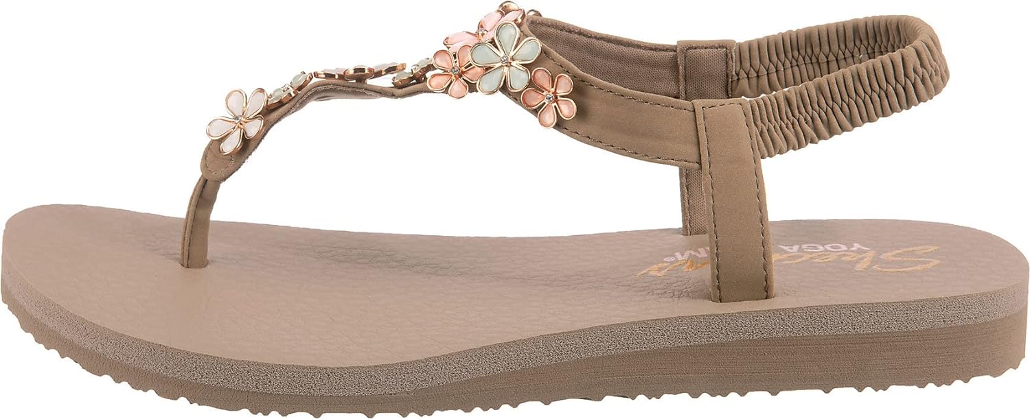 Floral embellished sling back sandal with yoga foam cushioned footbed.