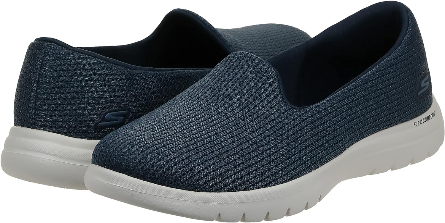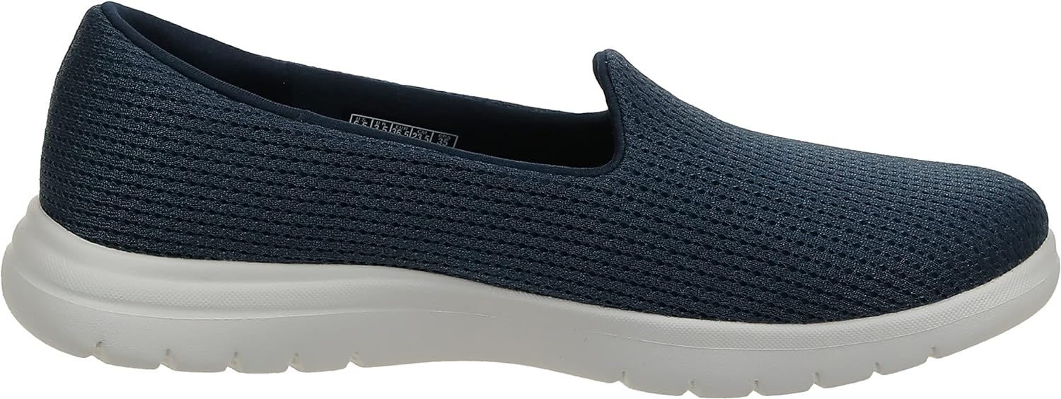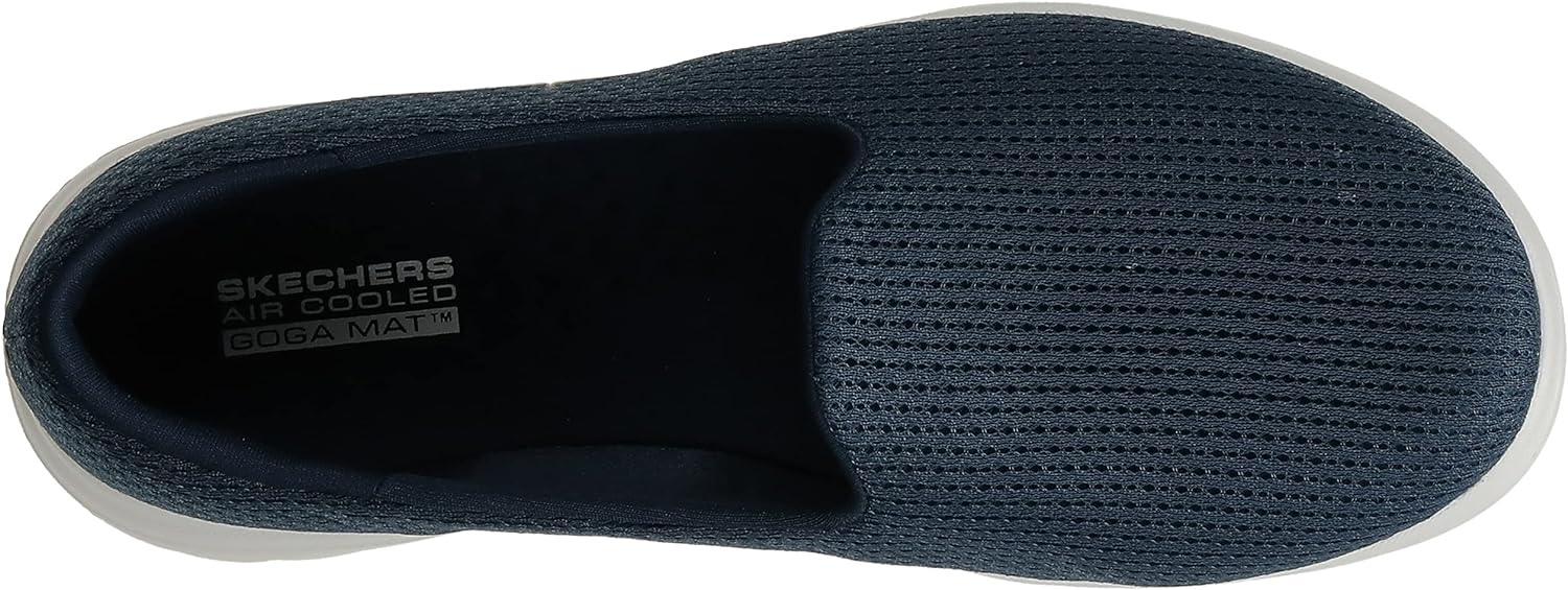 Sleek style and easy-wearing comfort deliver in Skechers On-the-GO . This casual skimmer design features an engineered mesh upper with an Air-Cooled Goga Mat™ insole and a lightweight ULTRA GO® cushioned midsole. Construction Engineered mesh upper with a slip-on style Casual walking skimmer flat design Machine washable Flexible rubber traction outsole Skechers® logo detail Details Skechers Air-Cooled Goga Mat™ breathable insole with high-rebound cushioning Lightweight and responsive ULTRA GO®cushioning Ortholite® comfort foam insole layer adds long-term cushioning and high-level breathability with 5% recycled rubber content