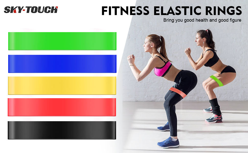 Sky-Touch Elete Exercise Resistance Bands Set Of 5 Resistance Loops Extra Light To Extra Heavy Resistance 12 Inch Work Out Bands Perfect For Gym, Fitness, Yoga, Multicolor, Resendent Bank 1,