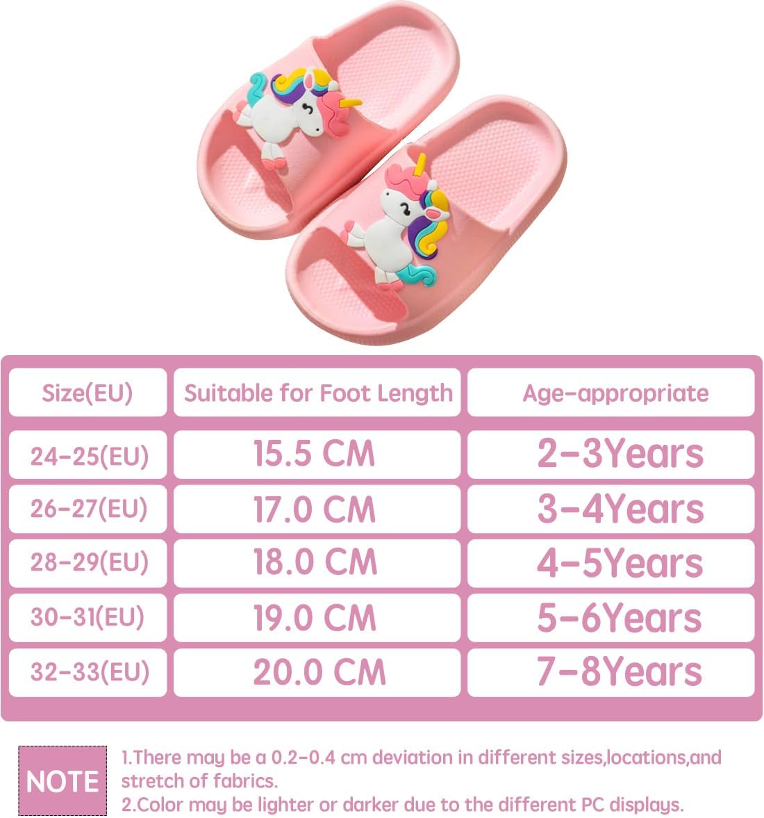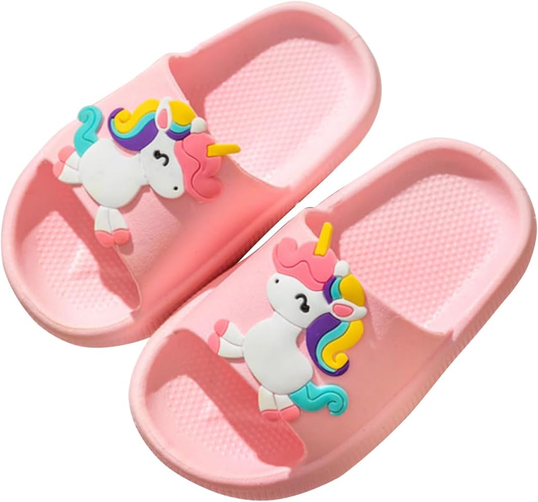 Slippers for Kids Boys Girls Slides Sandals Non-Slip Quick Drying Shower Slippers Unisex Child Toddler Open Toe Indoor Outdoor Beach Bathroom Garden Shoes (PINK UNICORN, numeric_28)