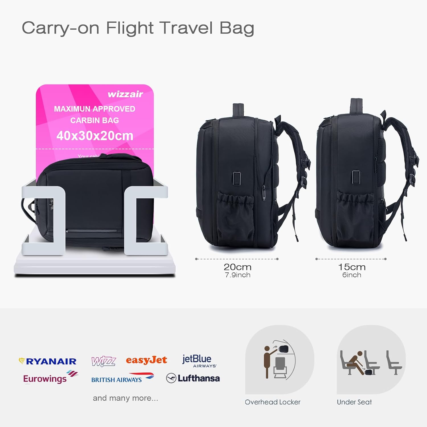 SPAHER Cabin Bag 40x30x20 Wizzair Underseat Laptop Backpack 15.6 Inch for School Carry On Bag Luggage Travel Backpack Hand Luggage Backpack Casual Daypack Approved Holdall Rucksack Flight Bag