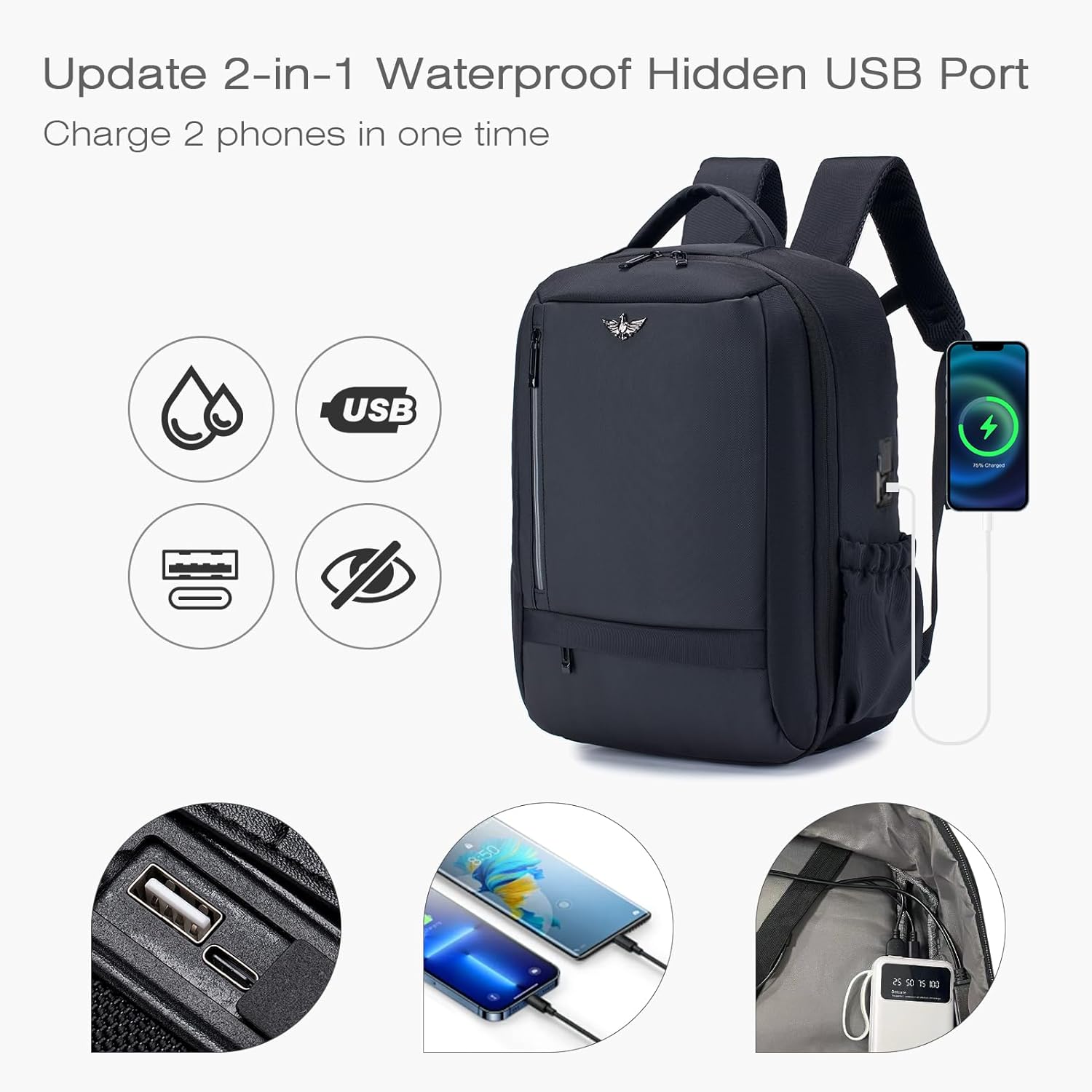 - Unique USB Charging Port: SPAHER travel laptop bag is designed with built-in USB port and USB cable, provides much more convenience to charge your electronic devices anytime, anywhere. Connect your power bank to the internal cable, then let the charging cable plug into the USB port to connect your device. Please note that the backpack does not contain a power bank.