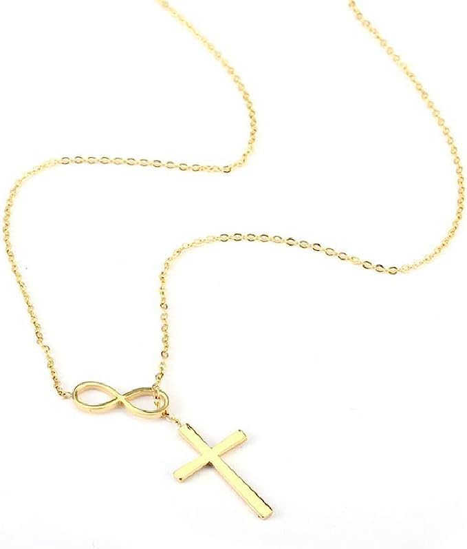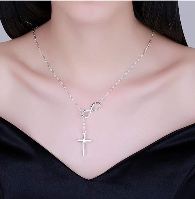 Sterling Silver Cross Infinity Necklace for Women Confirmation Gift Infinity Pendant for Girls Dangling Cross First Communion,Religious Necklace Silver, Rose Gold Plated Silver Jewelry