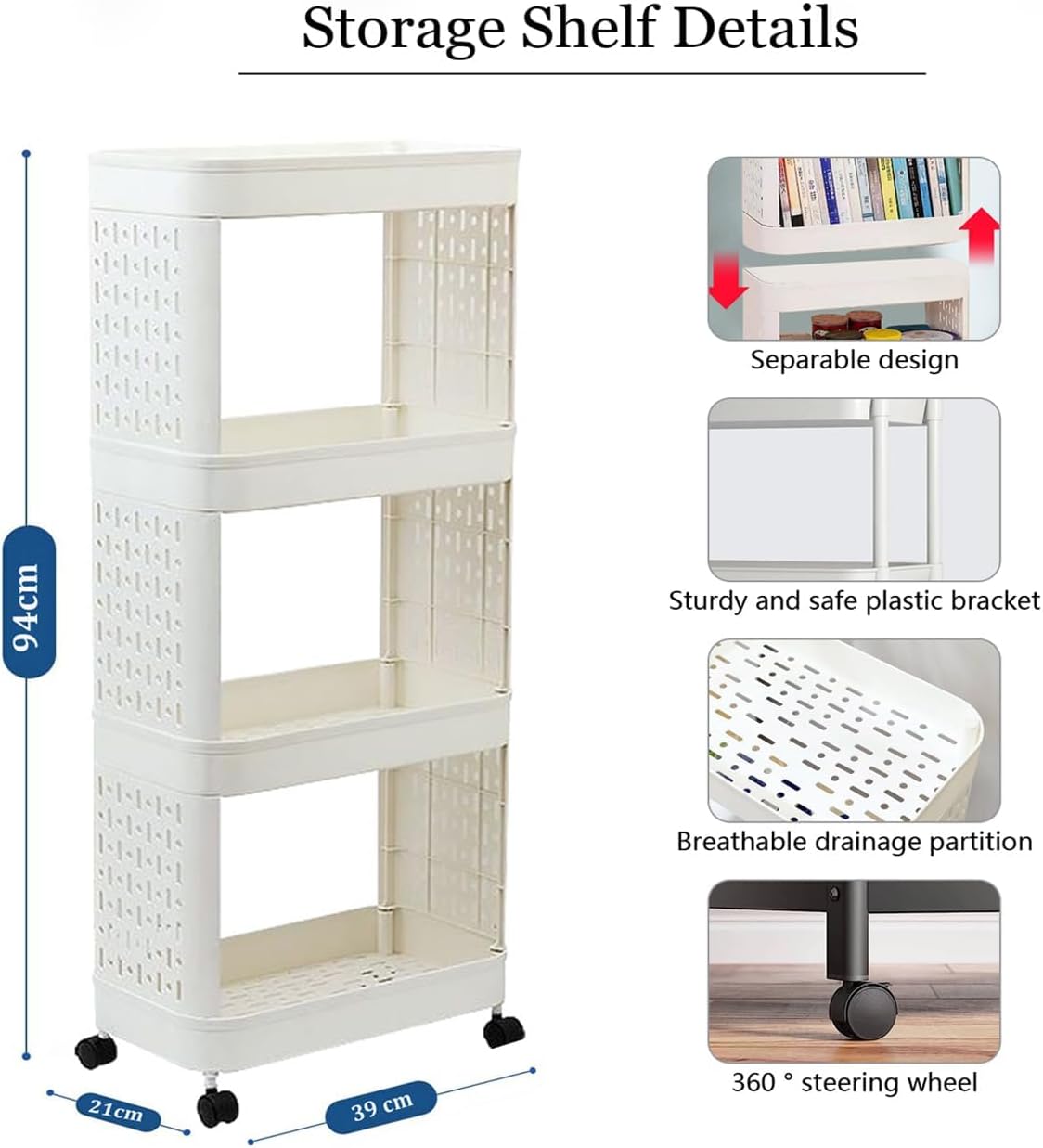 【4 Tier Storage Cart】The rolling cart with wheels(360°rotating ) The storage cart can be moved to any corner of the house to store items,can be used in tight spaces in your home for storage. The overall size:39*21*94 cm