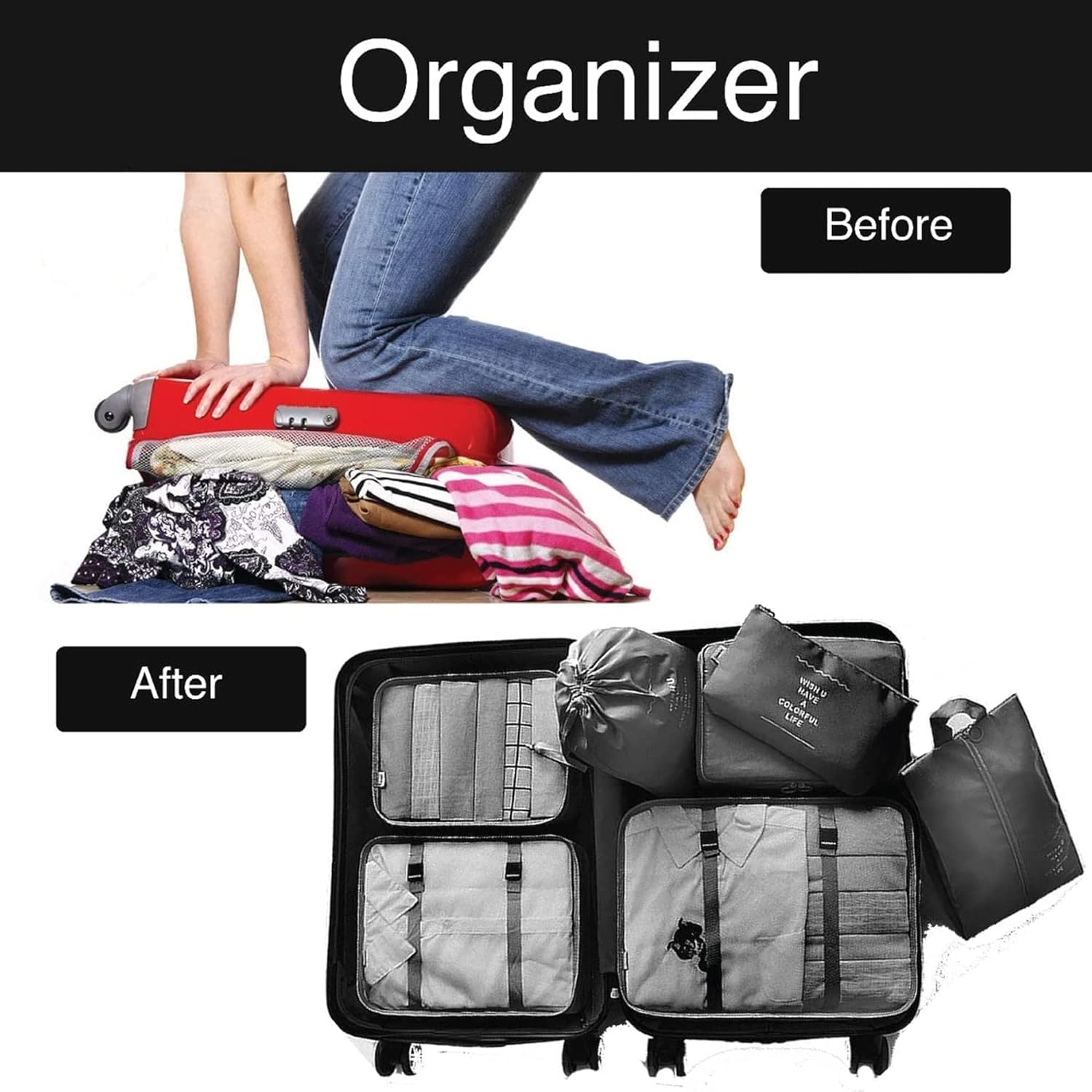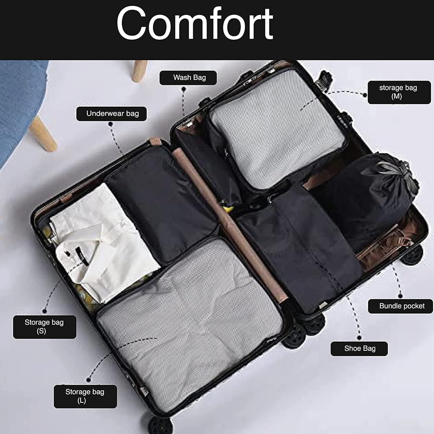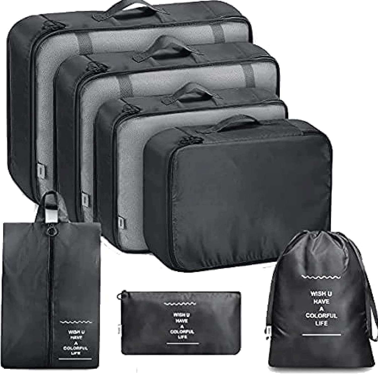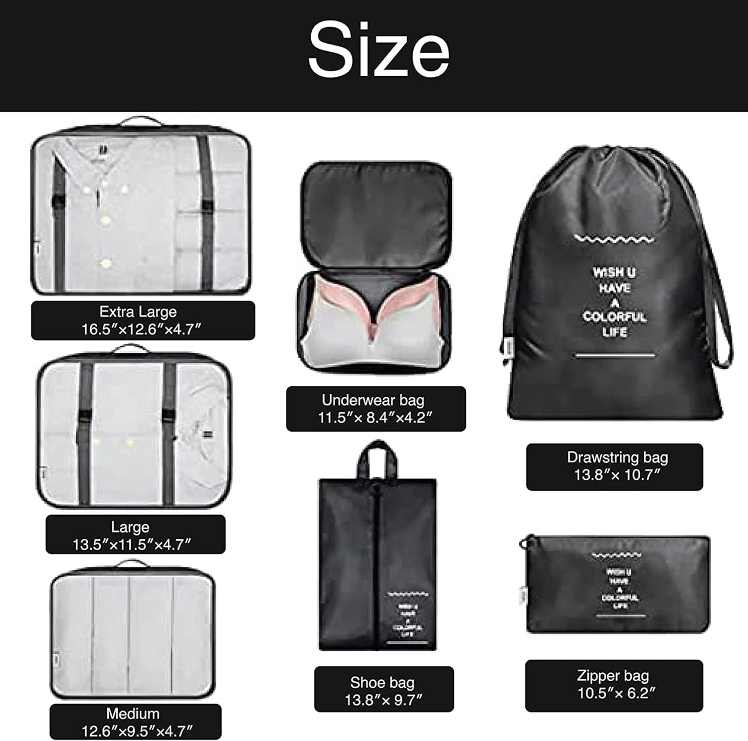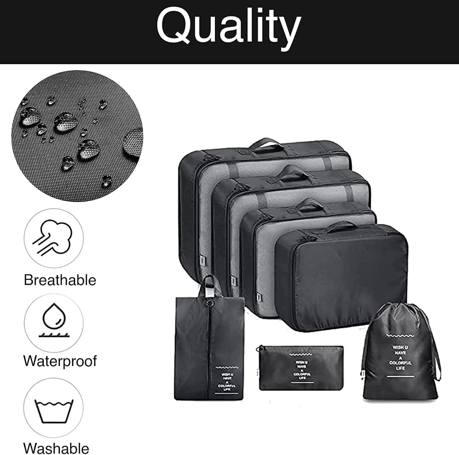 Sulfar Grand 7 pcs Set Travel Luggage Organizer Packing Cubes Set Storage Bag Waterproof Laundry Bag Traveling Accessories, Black