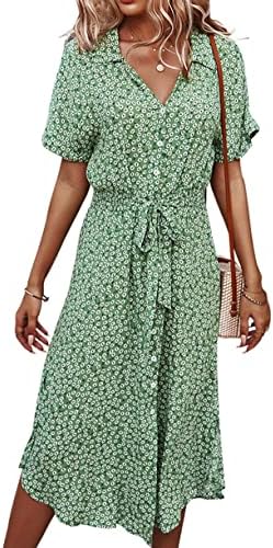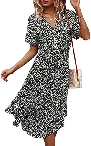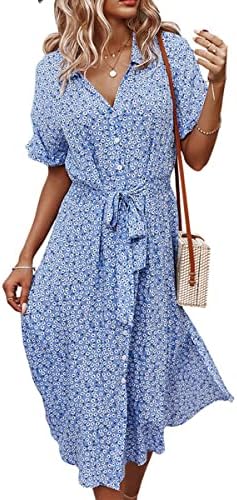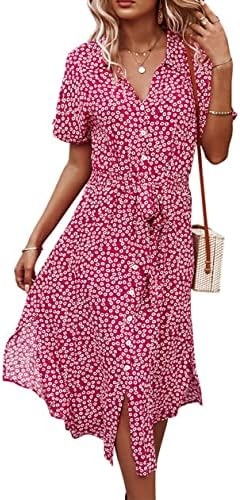- UNIQUE DESIGN: This V Neck Flowy Summer Dress Greatly Shows Your Charming Clavicle. The A-Line Swing Dress With A Belt, Adjust To Your Comfort Level.