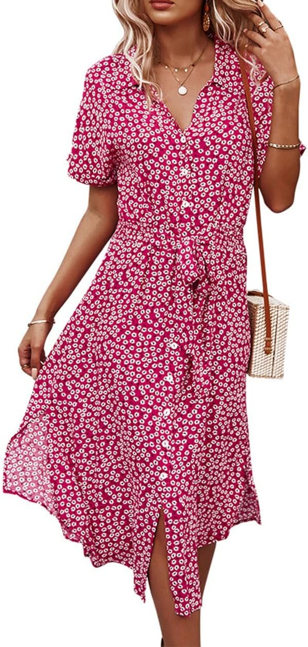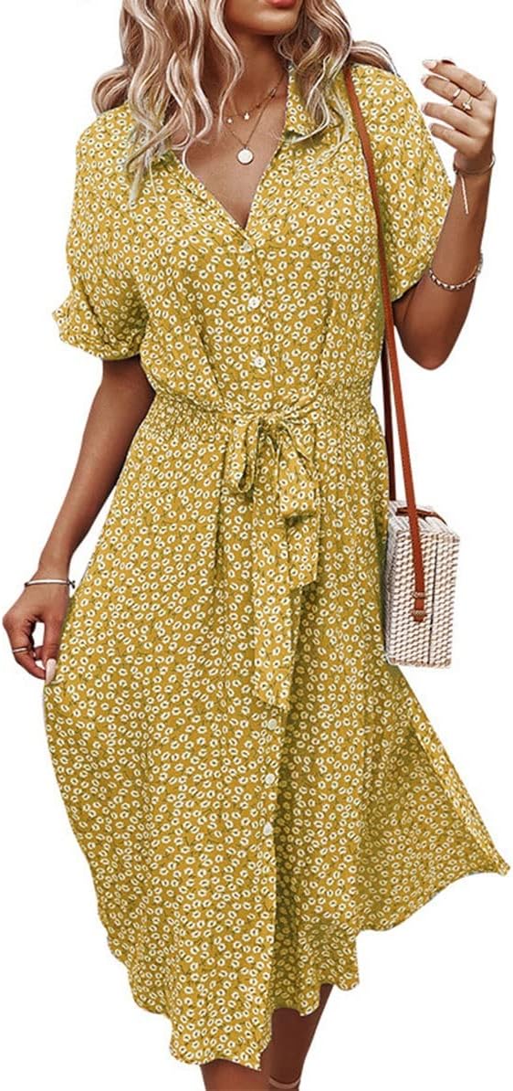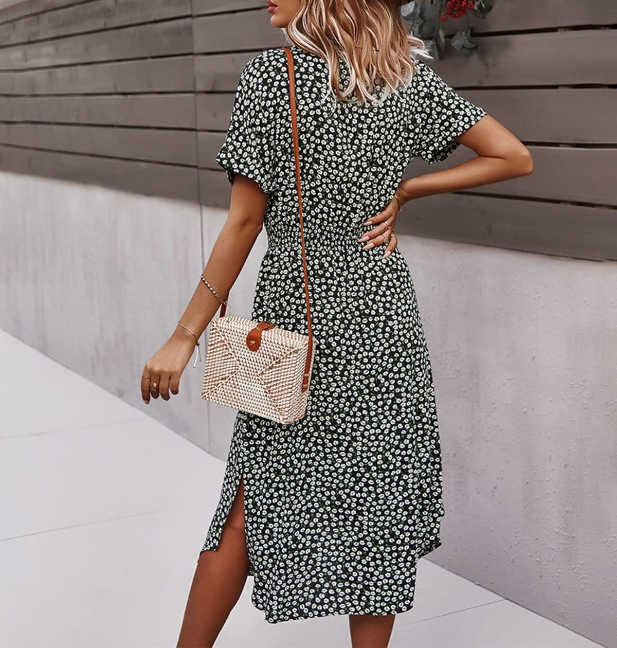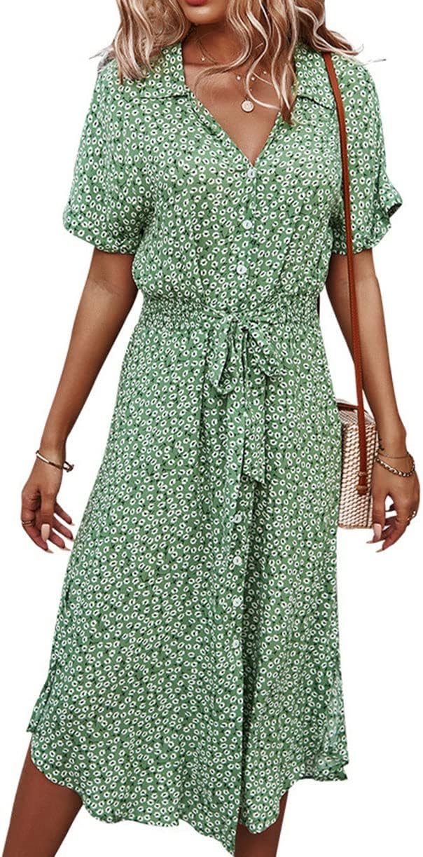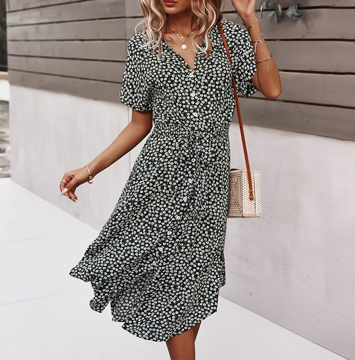 Welcome to our store, no matter the material or the style, wearing them will make you very comfortable and look very beautiful and charming.Fabric: 95% PolyesterClosure: Pull-OnNeckline: V-NeckColor: Pink, Black, Yellow, Blue, GreenGender: Women, Ladies, GirlsLength: Midi Length / Belong/ The Knee / Above The AnkleSeason: Spring, Summer, FallStyle: Bohemian / Boho / Casual / Fashion / Cute Daily / Beach / VacationOccasion: The midi dress is suitable for Fall, Spring, Summer, Date, Party, Work, Beach, Vacation, At Home, and Weddings GuestPackage includes: 1 x Women's DressLaundry Guide:washed Better or Machine To Wash Cold Gentle (recommend With A Laundry Bag ), with Like Colors. Not Shrink. Non-chlorine bleach, hang, Or Line Dry, Iron Low. Can Not Be Dried At High Temperature And High-Temperature Ironing.Note:1. Please allow there is a 2-3cm difference according to manual measurement. make sure you don't mind before ordering.2. The color of the product in the picture may be slightly different from the color of the actual product.Reminder: We only sell dresses, others are just for display. If you have any problem with your order, please feel free to contact us. We will easily replace or refund your purchase!
