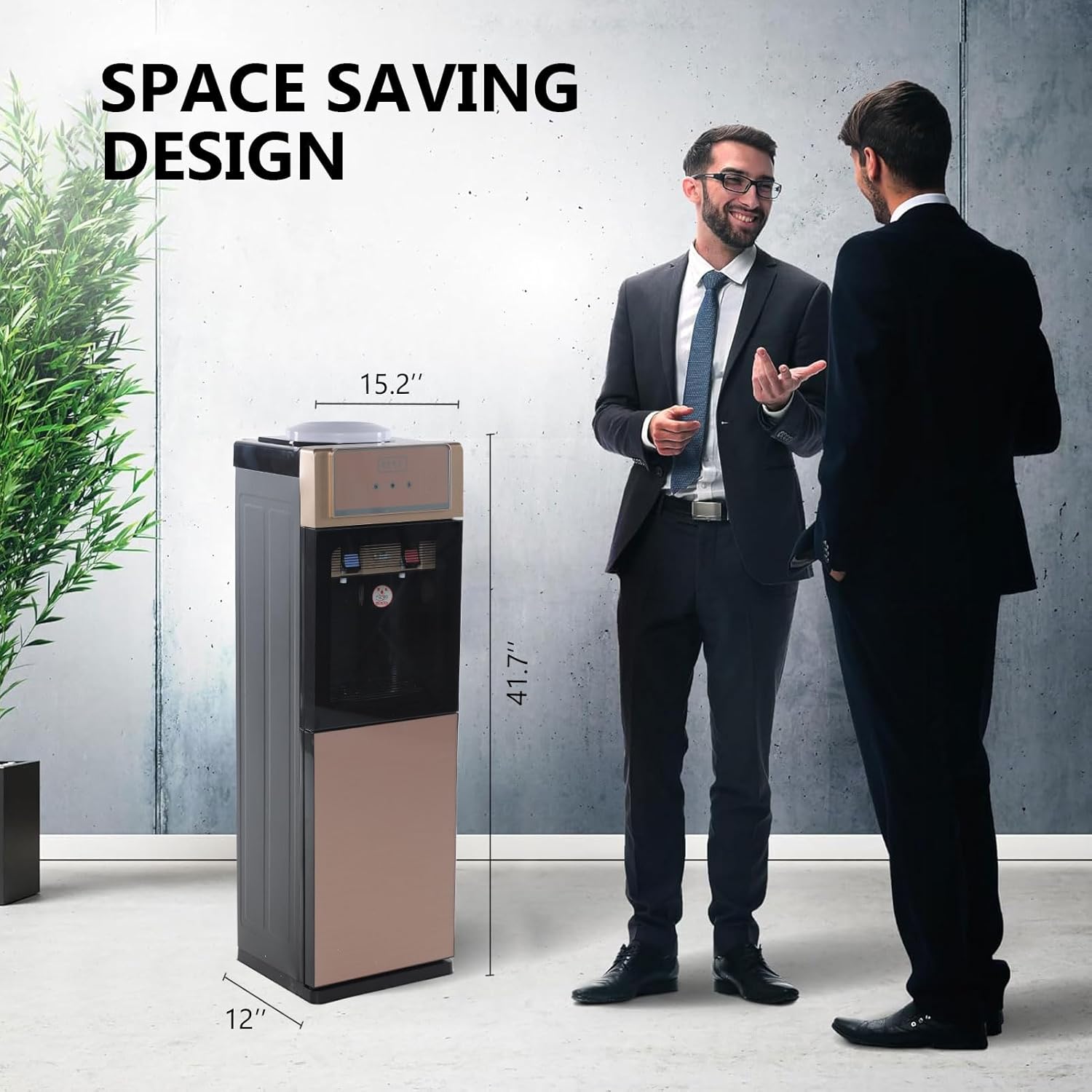 👑TOP LOADING DISPENSER: This water cooler dispenser loads from the top & allows you to spot if the dispenser is running out of water, which is a great feature for office settings.