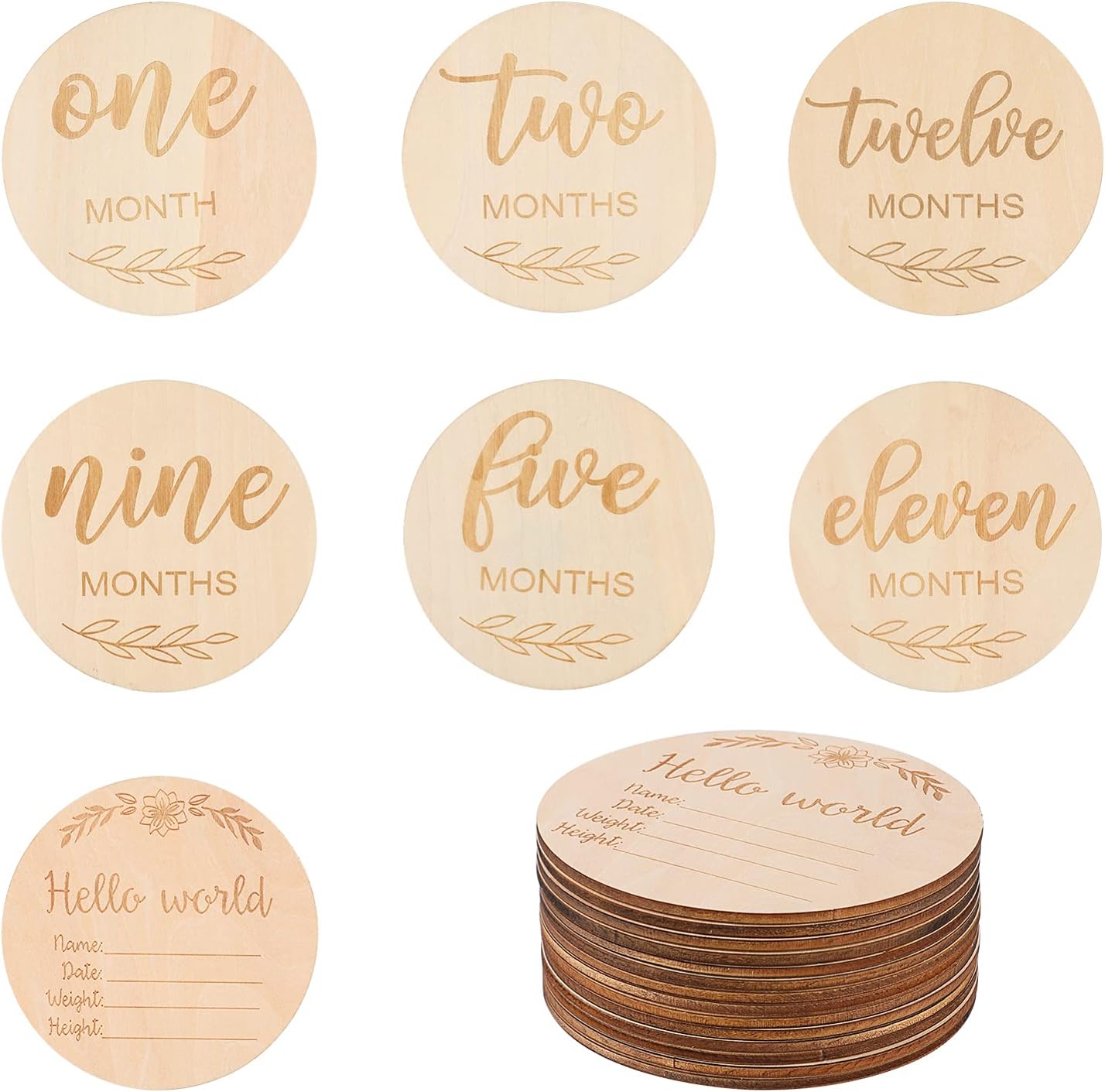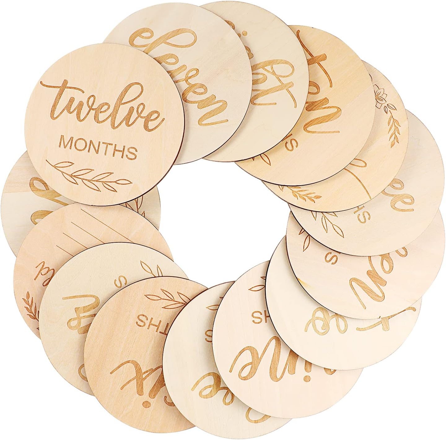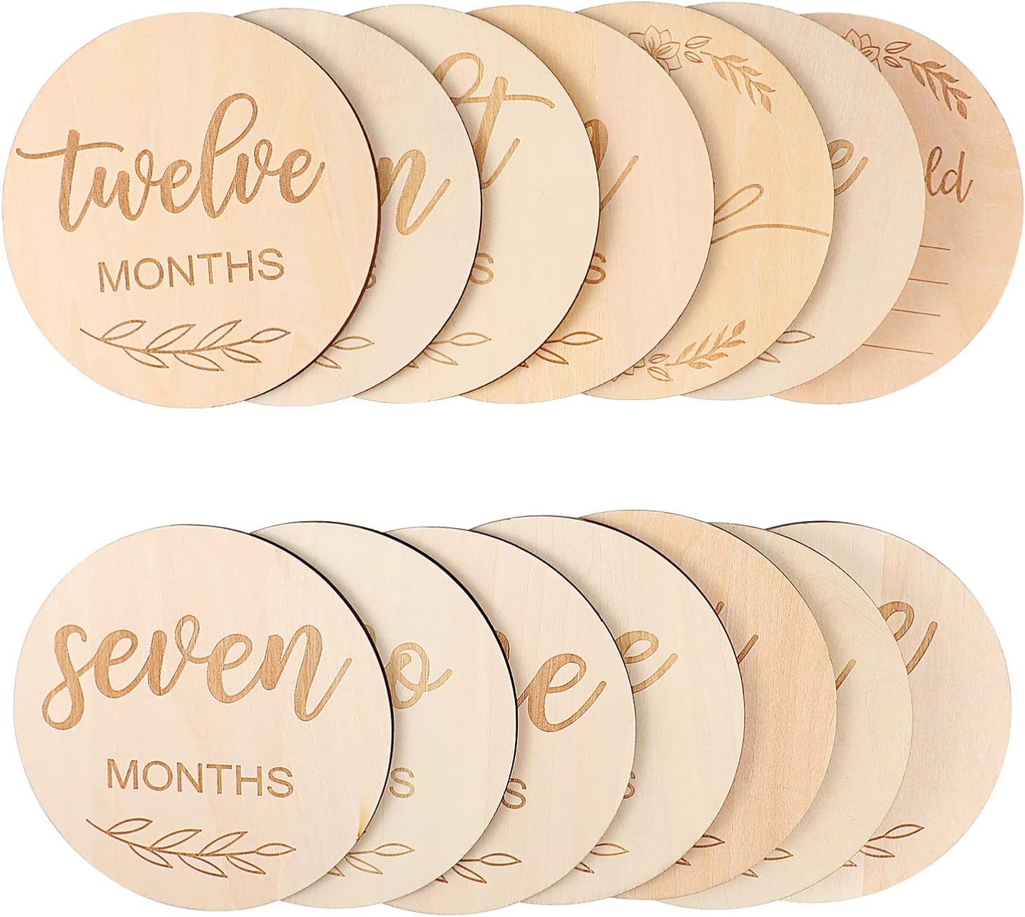 Toyvian 14 Piece Wooden Baby Monthly Milestone Photo Cards, Baby Announcement Cards, Baby Milestone Discs for Newborn Baby Shower Gifts