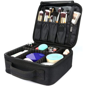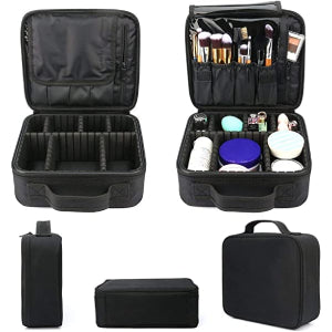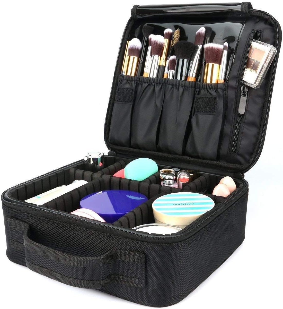 Travel Makeup Bag,Portable Travel Makeup Cosmetic Case Organizer Artist Storage Bag with Adjustable Dividers for Cosmetics Makeup Brushes Toiletry Jewelry Digital Accessories, Black, BK14-WAA-2