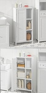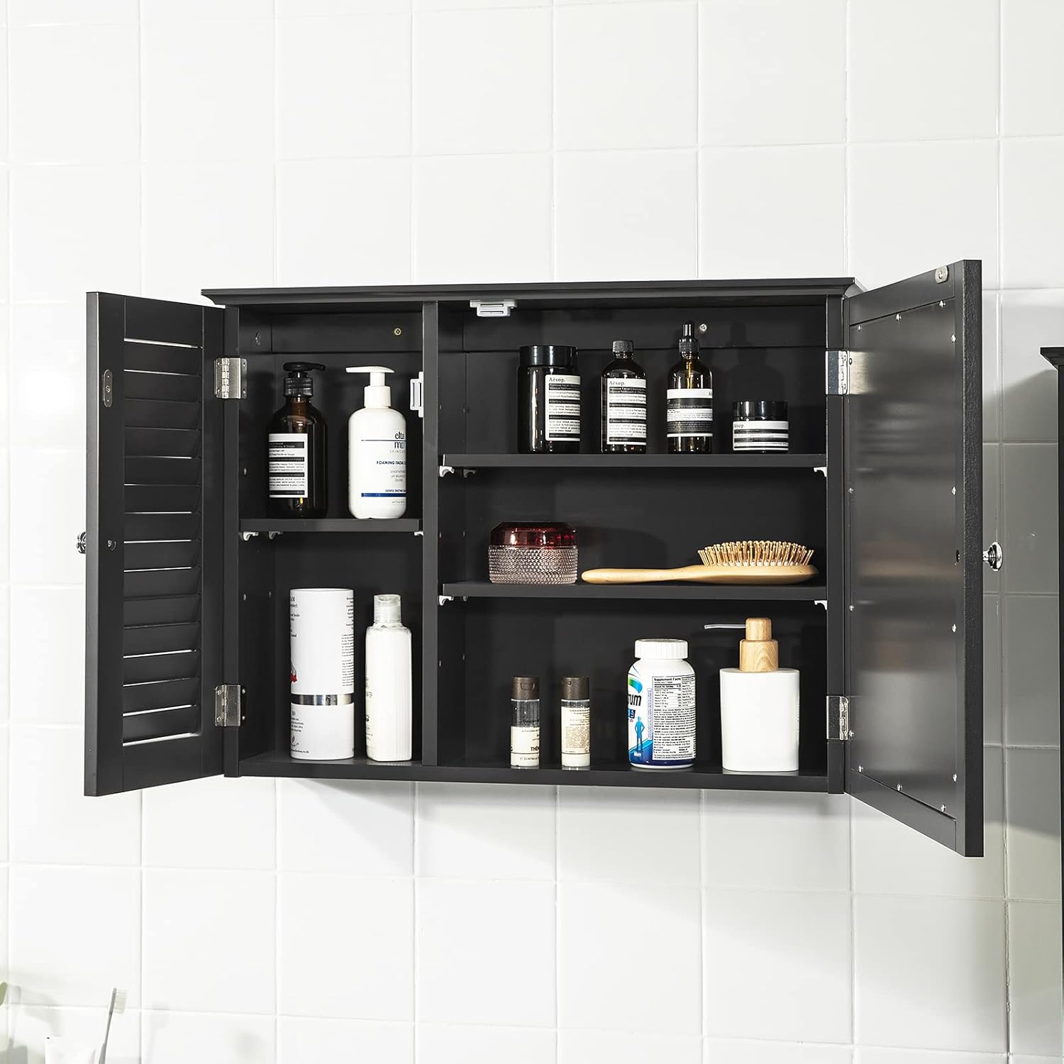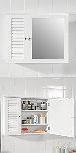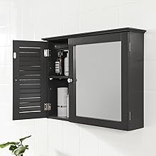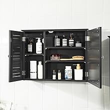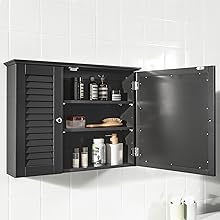 The wall cabinet provides plenty of space for keeping your bathroom essentials and toiletries stored.