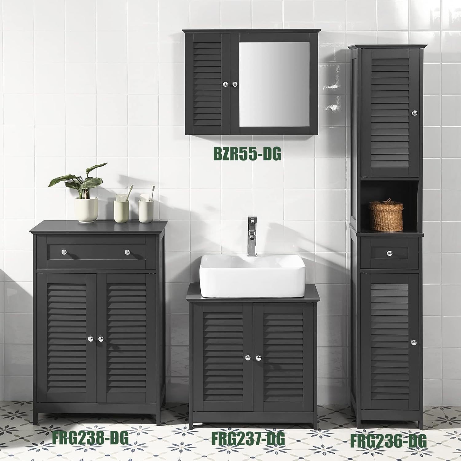 ((UAE STOCK) SoBuy BZR55-DG, Bathroom Wall Mirror Cabinet, Wall Mounted Bathroom Cabinet, Mirrored Storage Cabinet Unit, Grey