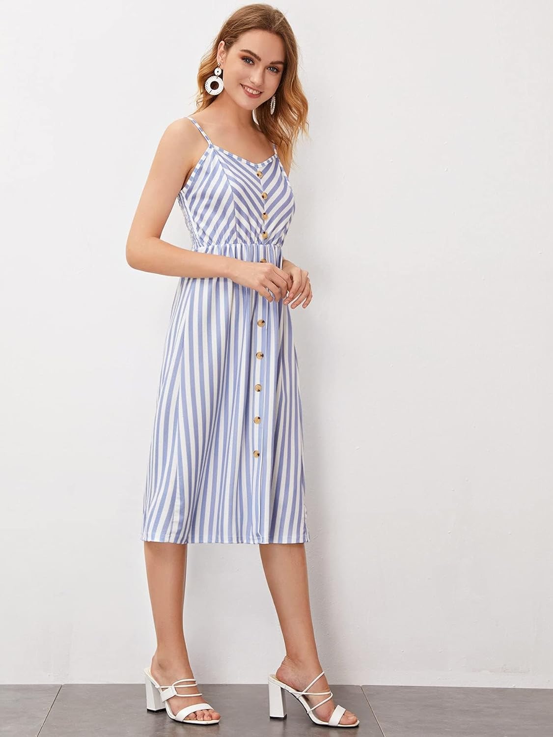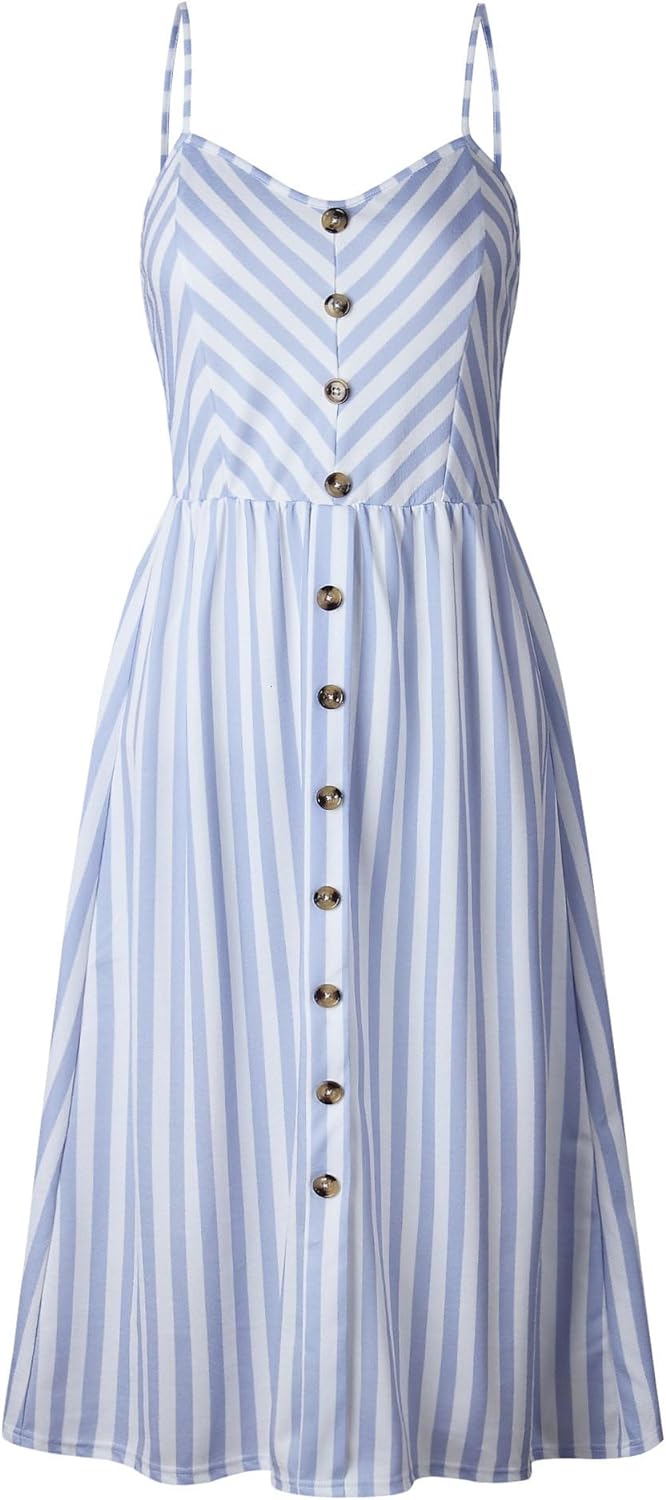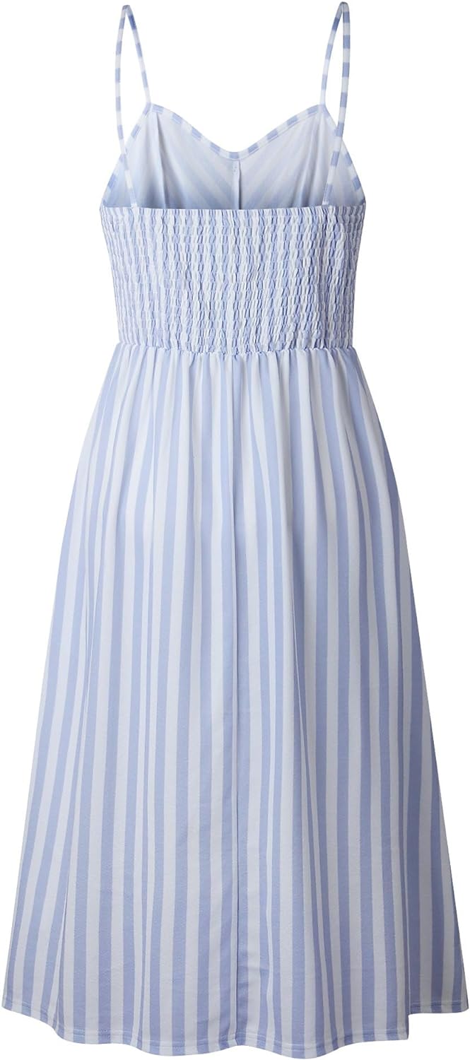 UBANT Women's Dress Summer Spaghetti Strap Sundress Casual Floral Midi Backless Button Up Swing Dresses with Pockets