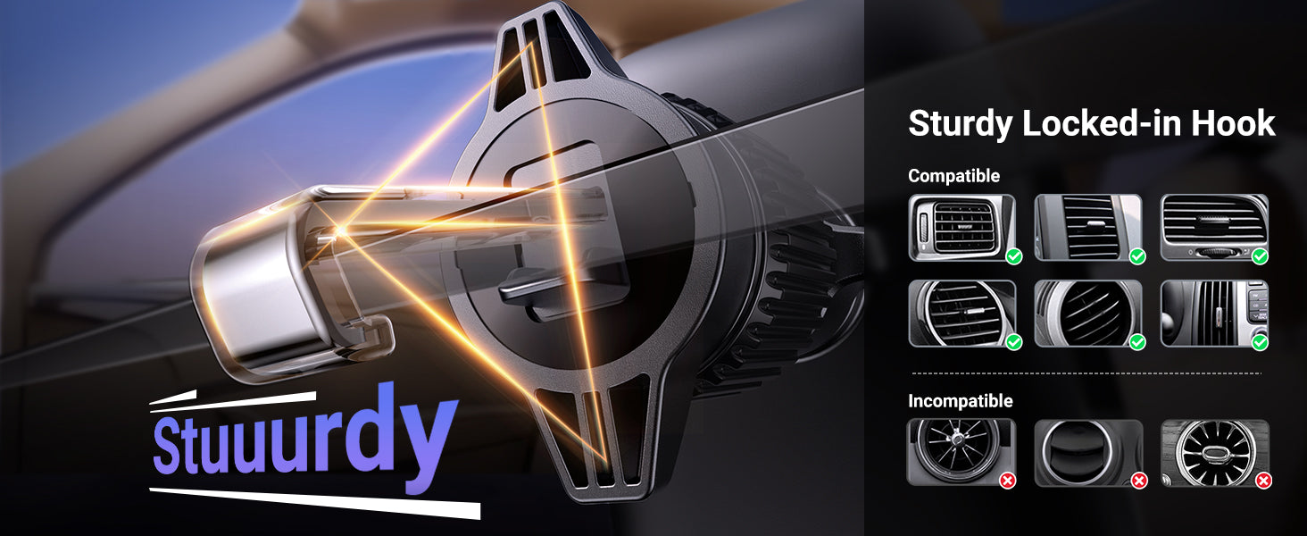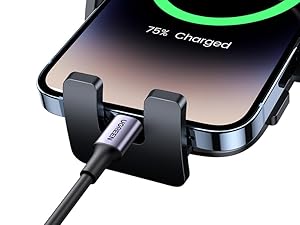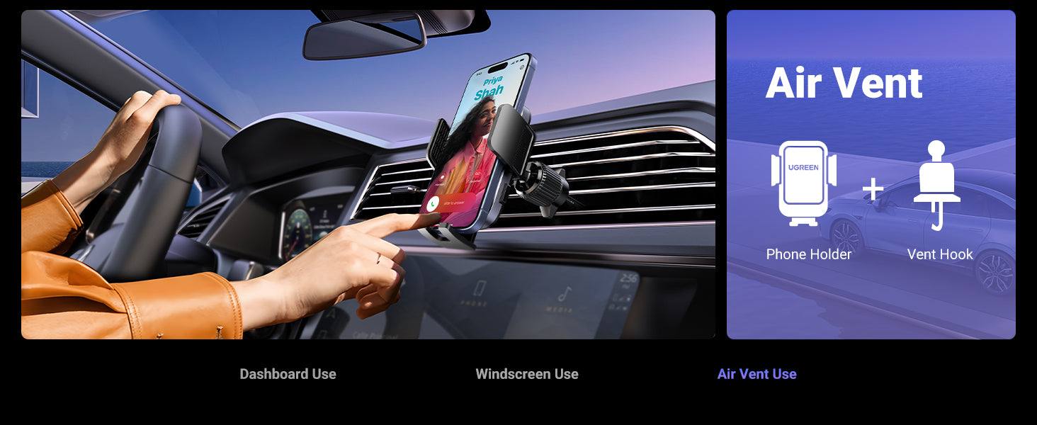 【100% Stable, Not Falling Metal Hook】Superior to general plastic hooks that easily snap, UGREEN iphone car holder adopts a high-quality metal hook and upgraded double-lock mechanism, which ensures that it can be securely attached to your car ac vents and 100% not fall off even on bumpy roads.