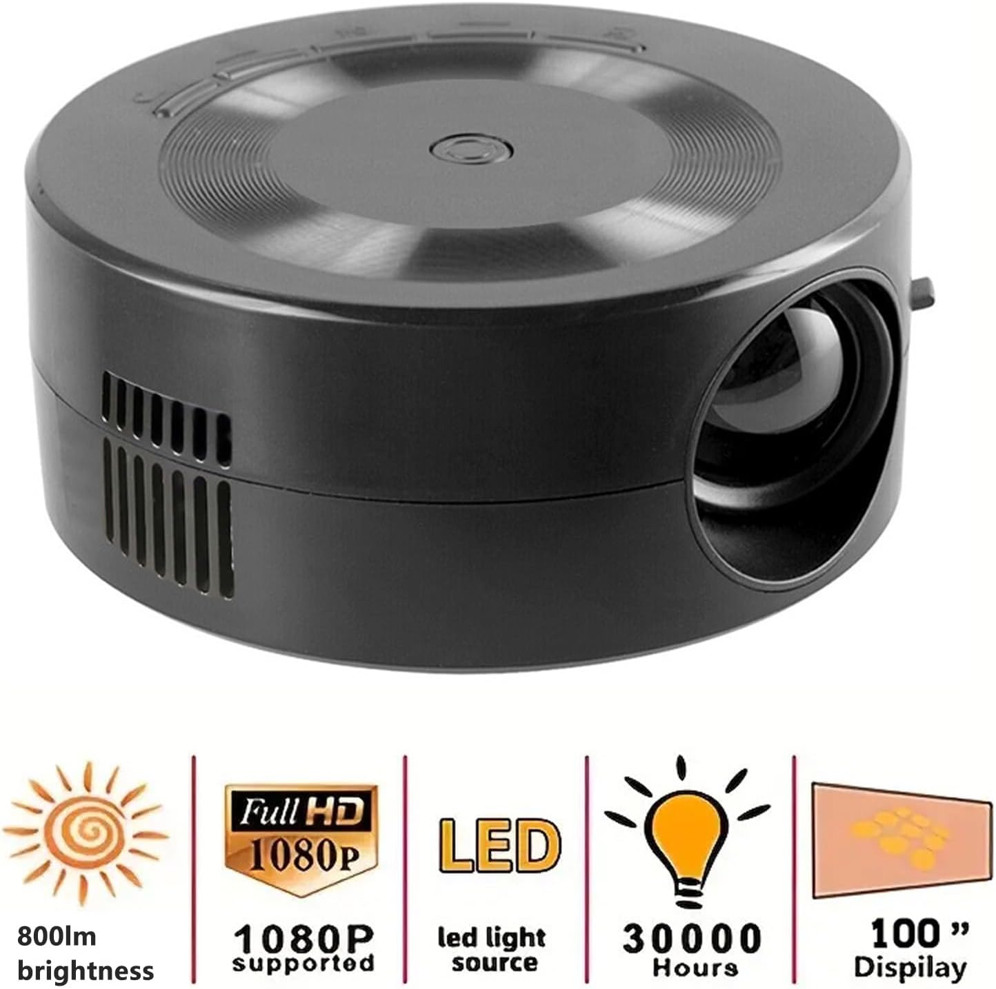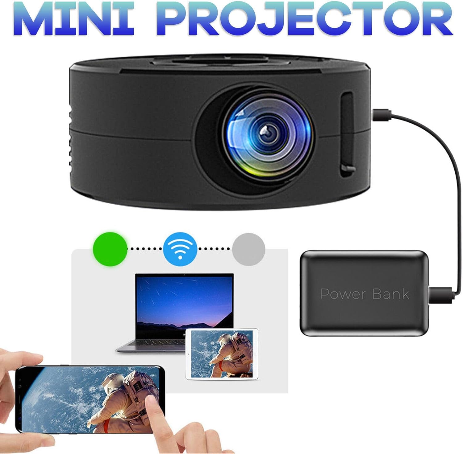 Video Projector, HD 1080P LED Mini Projector Portable Projector, Up to 100in USB Charging Wireless Movie Projector Built in Speaker, Outdoor Pocket Pico Projector for Smartphone, Tablet, Laptop
