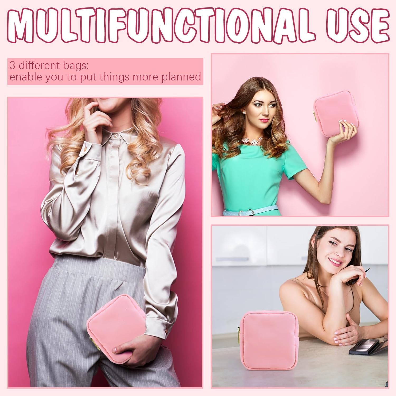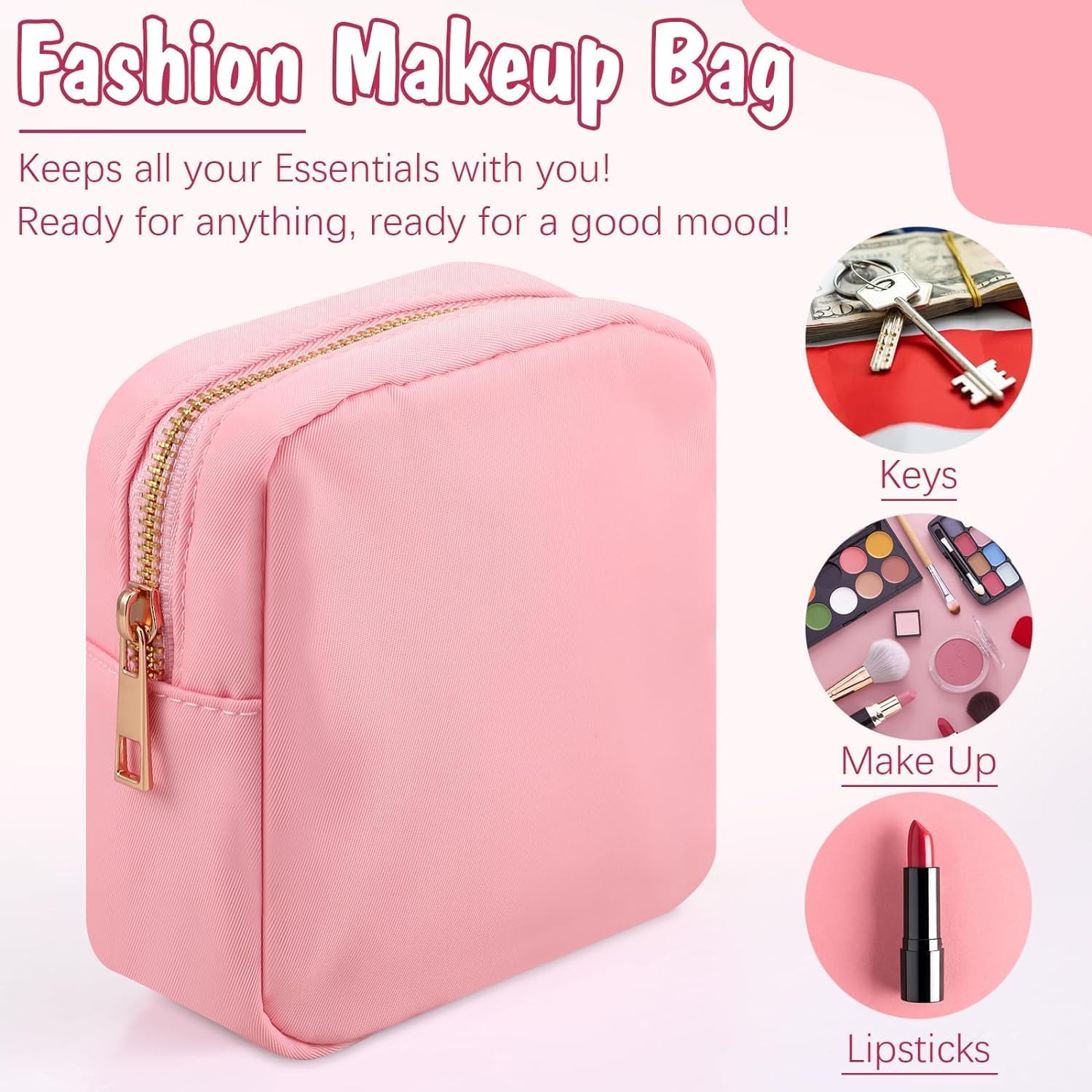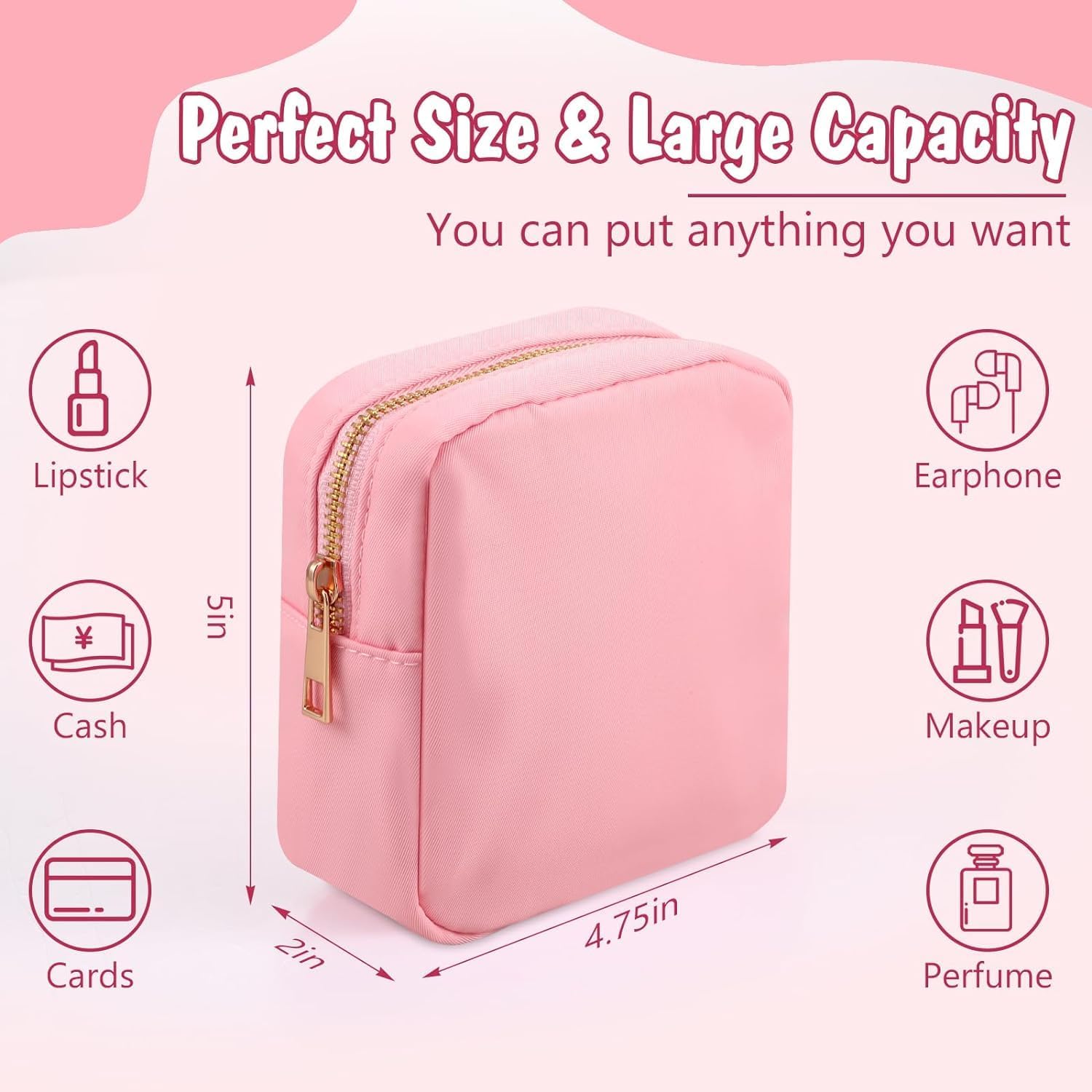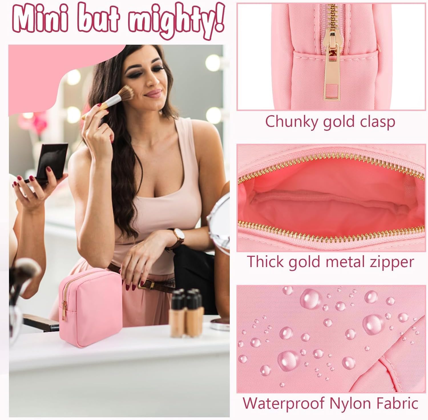 Wawasia Nylon Mini Makeup Bag, Small Cosmetic Bag Compact Make up Pouch Toiletry Bag, Waterproof Travel Cosmetic Bag Cute Stuff Storage Bags with Zipper (Pink)