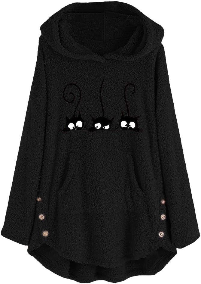 Women Hoodies Sweatshirt Coat, Ladies Cartoon Printed Long Sleeve Button Pocket Plus Size Warm Sweater Outwear