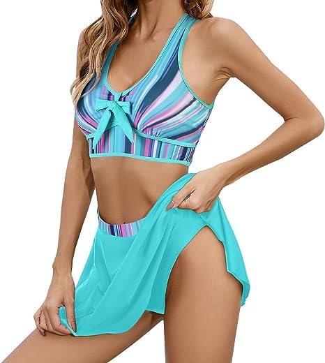 Make a statement at the beach or poolside with this Women Two-Piece Swimsuit.The high-waisted bikini bottoms provide tummy control and a flattering fit, while the vintage printed design adds a touch of retro charm. The matching skirt adds an extra layer of coverage and style. Enjoy the perfect combination of fashion and comfort with this chic and trendy swimwear set.
