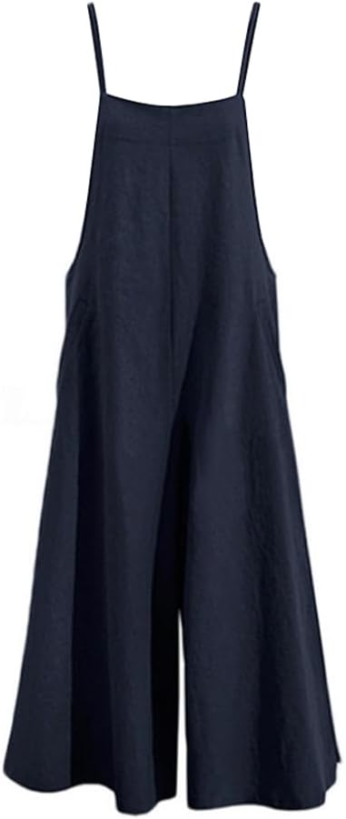 Women's Casual Loose Long Cotton Bib Overalls Baggy Linen Plus Size Jumpsuits Rompers Suits Wide Leg Pants