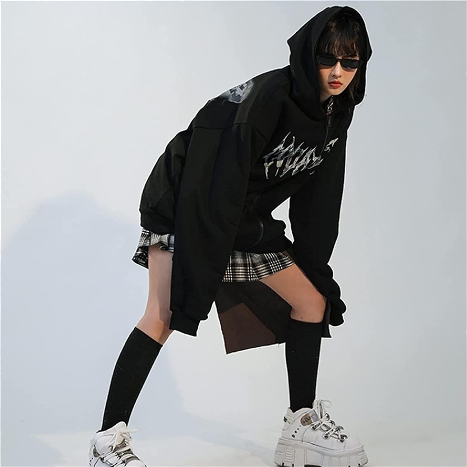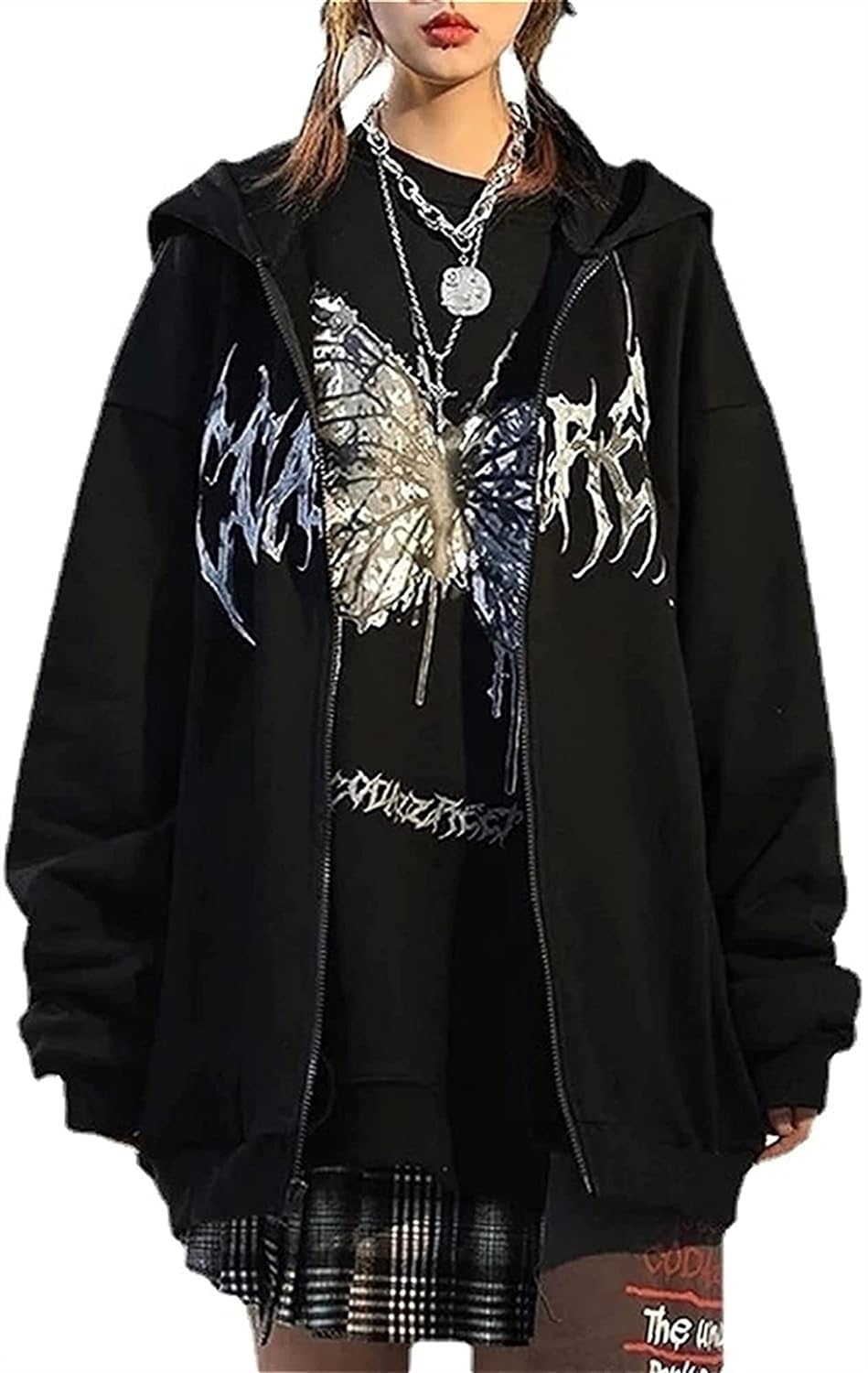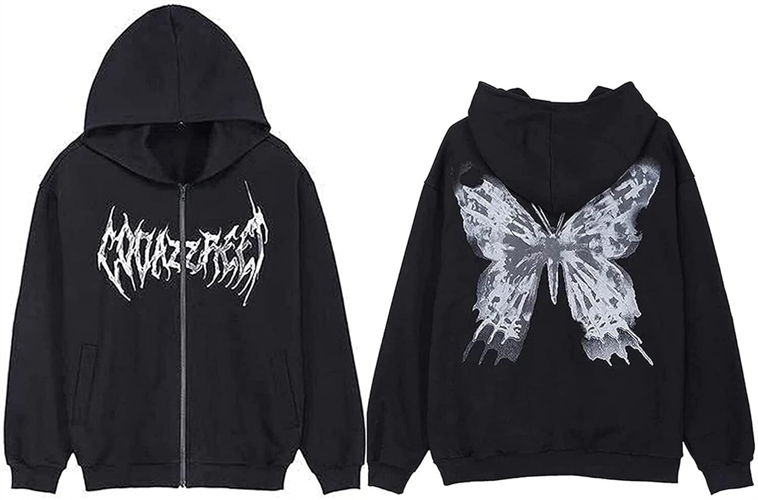 Womens Y2k Butterfly Zip Up Hoodies Rhinestone Graphic Oversized Pullovers Sweatshirt Goth jacket with Pockets (Color : Black, Size : Medium)