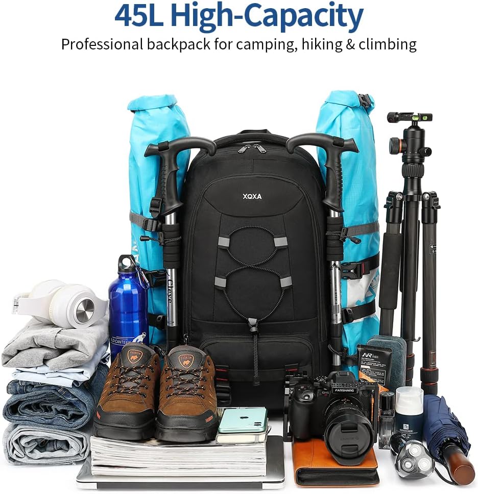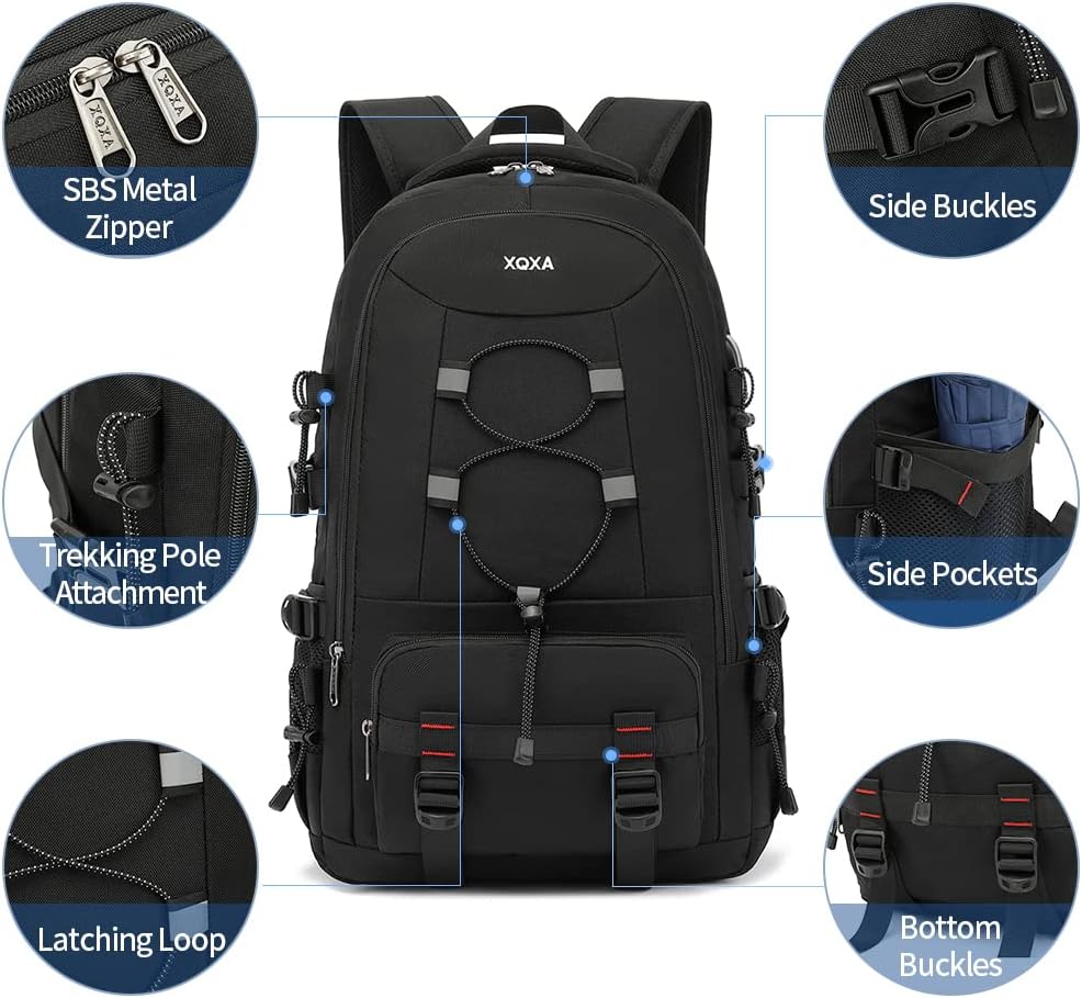 XQXA Travel Backpack, 45L Large Capacity Waterproof Hiking Backpack 17.3 Inch Laptop Backpack Male Female Trekking Backpack for Sports Outdoor Camping Camping