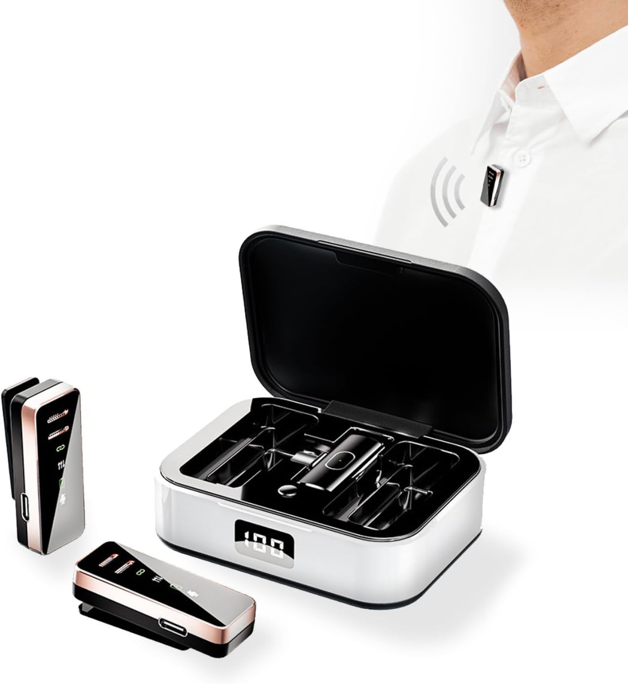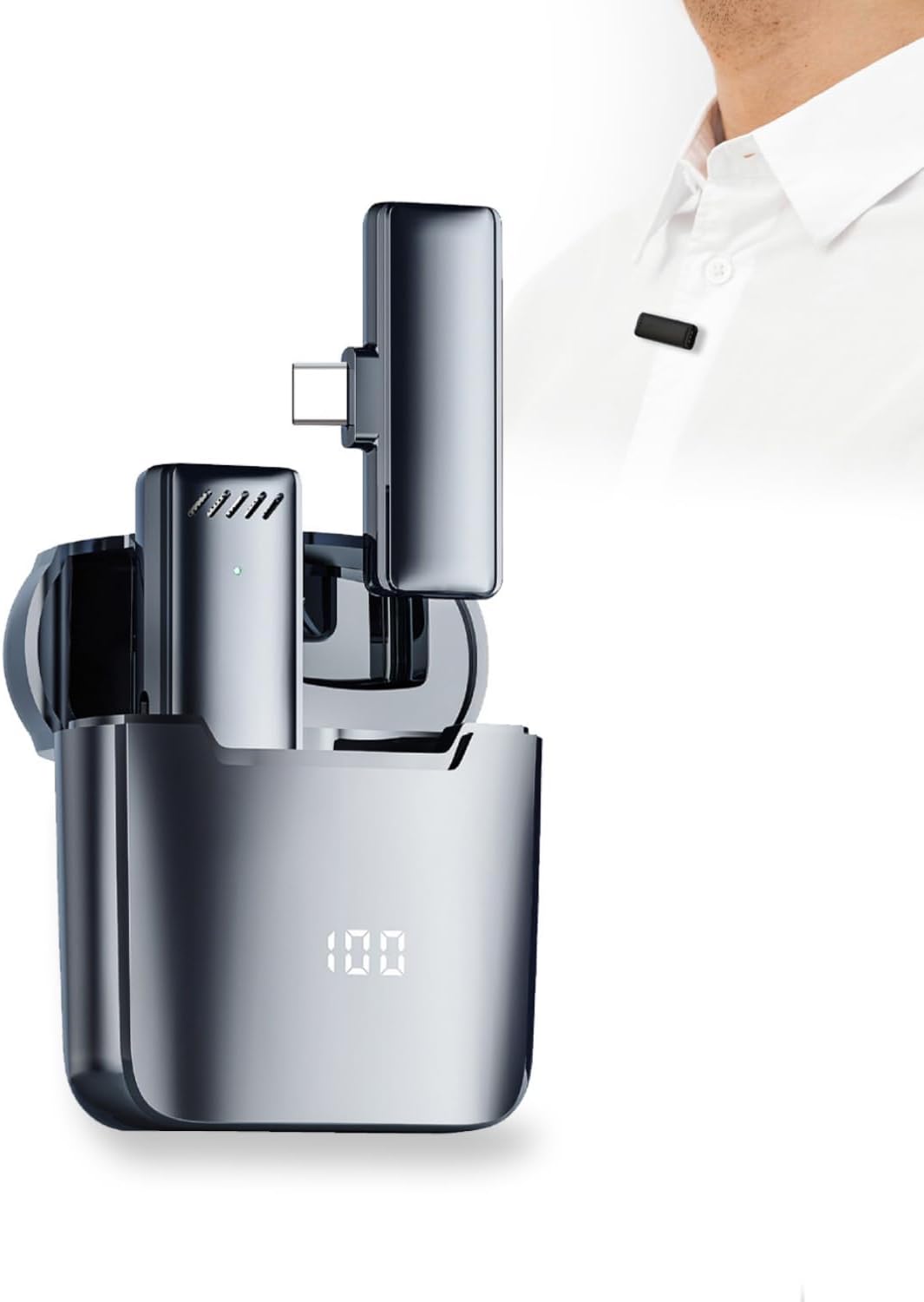 【What's included in the box】The XVersion Wireless Microphone comes with: 1 x Transmitter, 1 x Microphone, 1 x Charging Cable, 1 x Charging Box, 1 x Manual