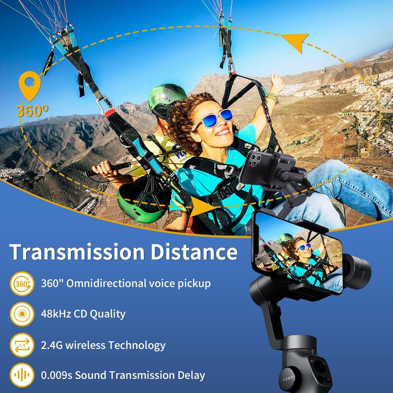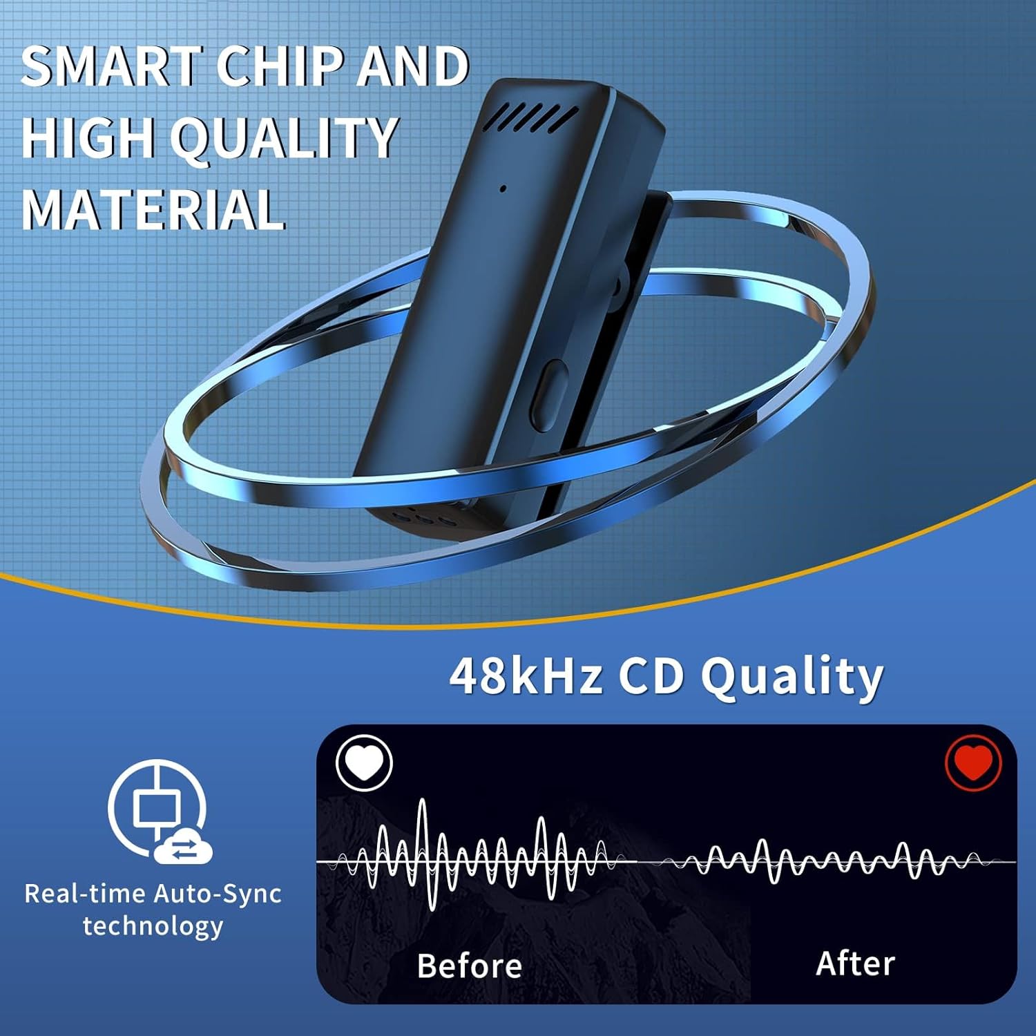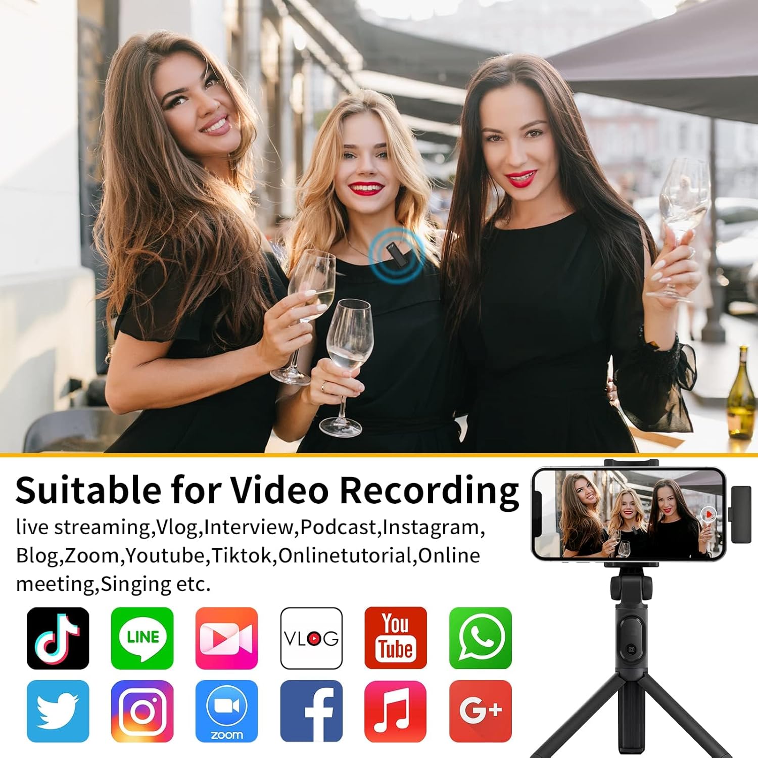 【Auto-sync Real-time & Superior Noise Cancellation】The wireless microphone uses real-time auto-sync technology, which extremely reduce the video post-editing, super low latency (5-8 ms) and provides you and your followers a better experience in watching videos. With omnidirectional microphone and professional noise reduction tech, effective identification of the original sound, clear recording in noisy environment.