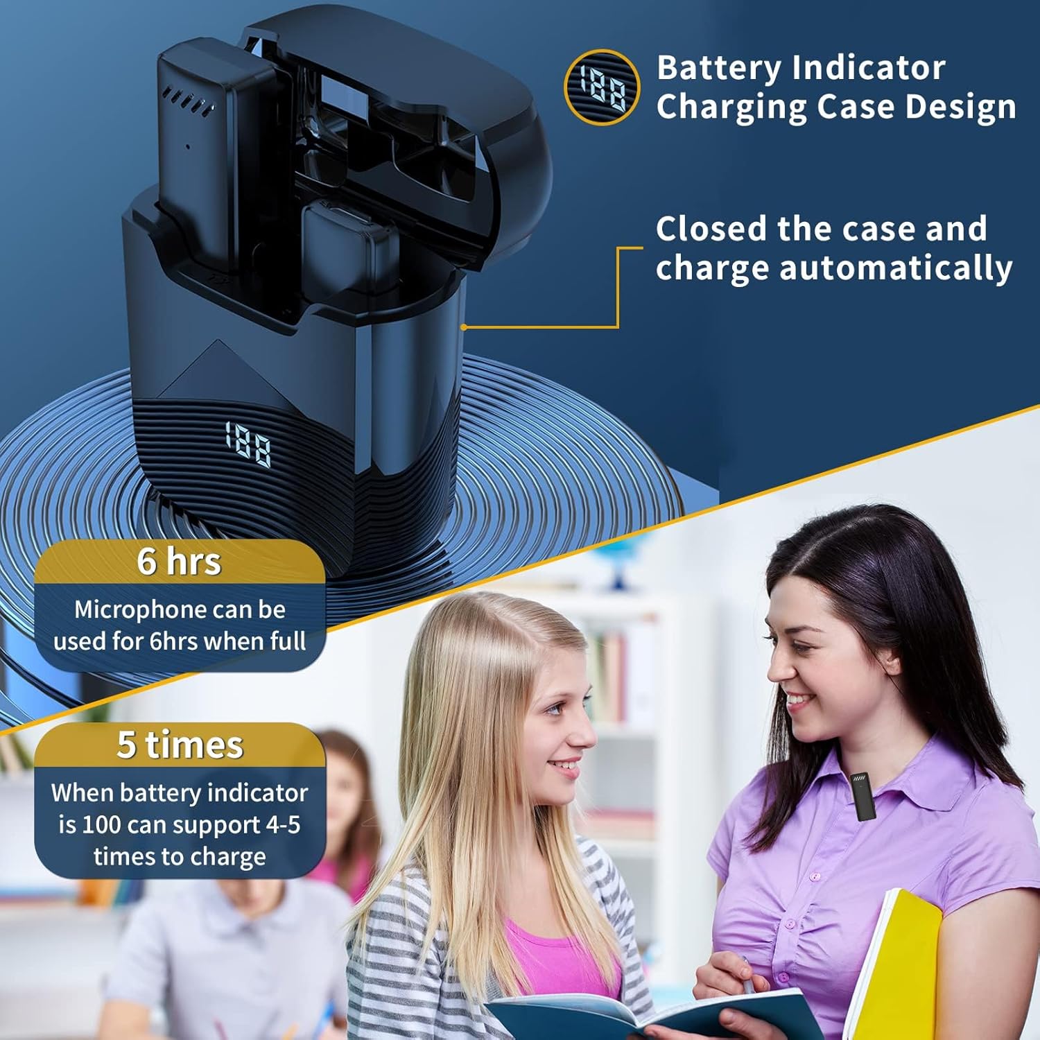 【Long Working Time, Long-Distance Transmission】One charge of 1.5 hours wireless clip-on microphone can continuous work about 8 hours. 360° all-round sound collection and 65 Feet long distance wireless transmission. The wireless mic makes video/audio recordings a breeze.