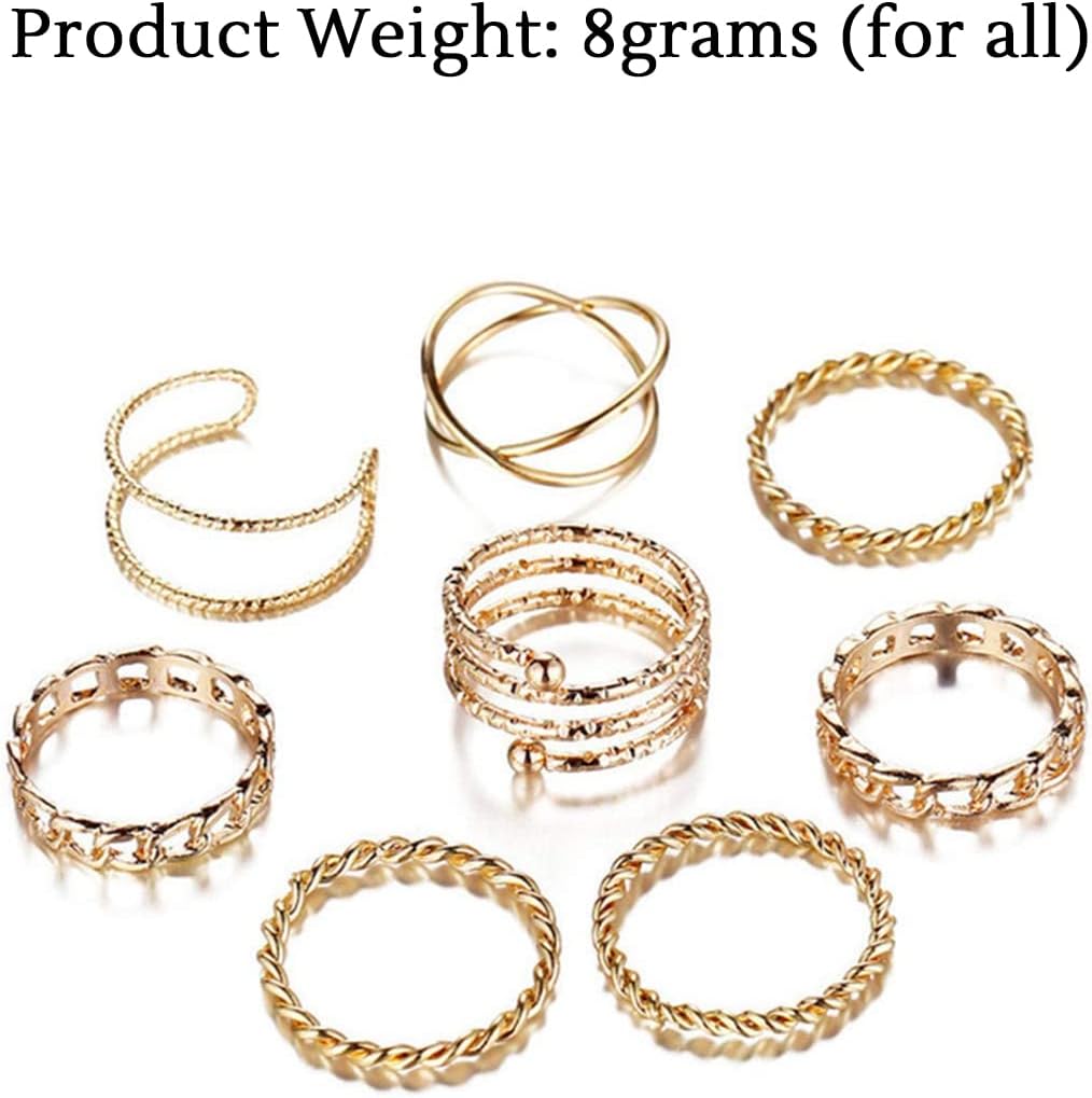 - Vintage &Trendy Bohemian Vintage Style- combo of 8 pcs/set with Gold Plating, These Retro Vintage Rings ,make you more Charming and Eye-Catching Knuckle Rings Set.