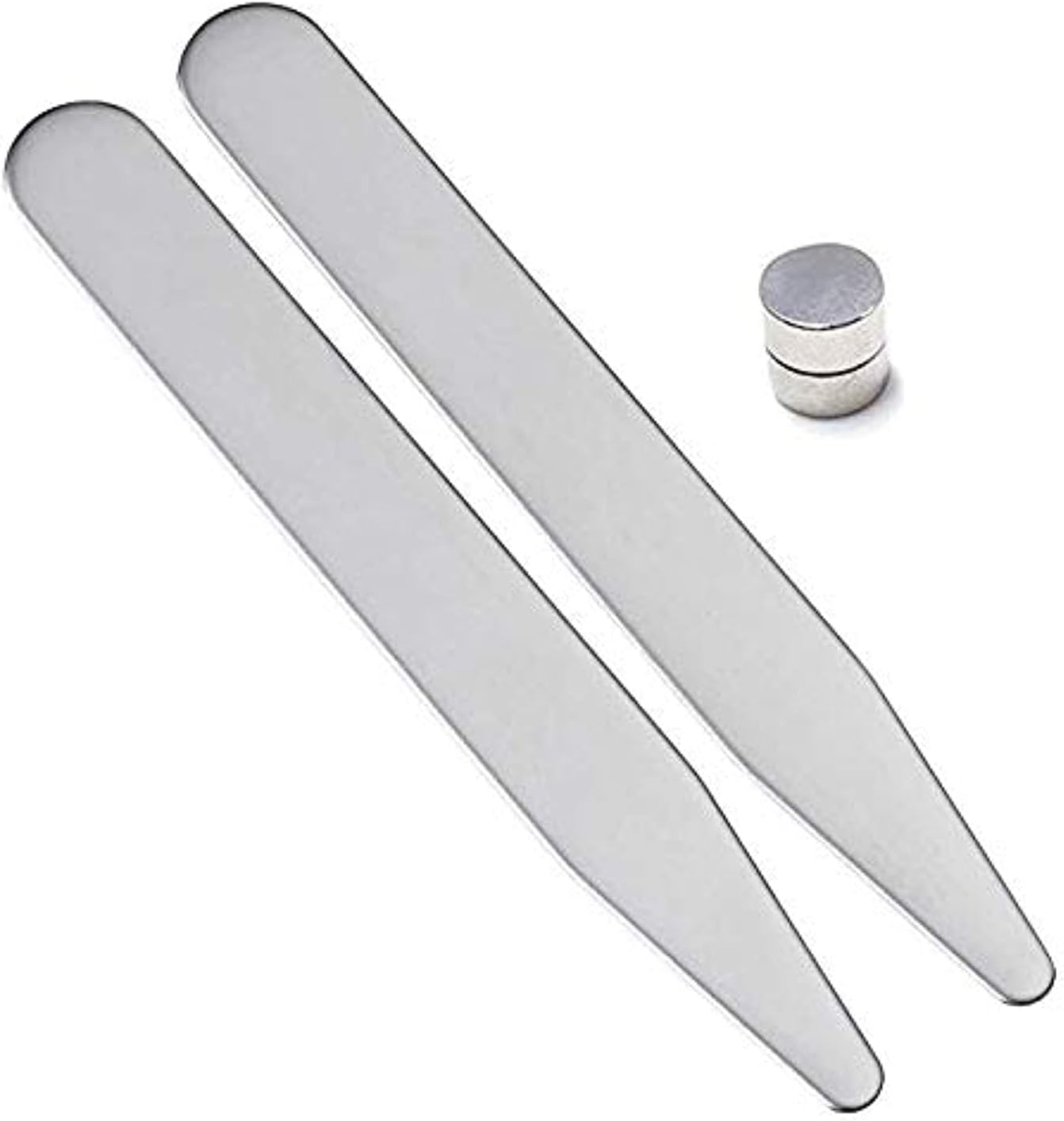 - Size:7.5 CM* 0.5 CM. Color:Silver. Package Includes- One Pair Magnetic Collar Stays.