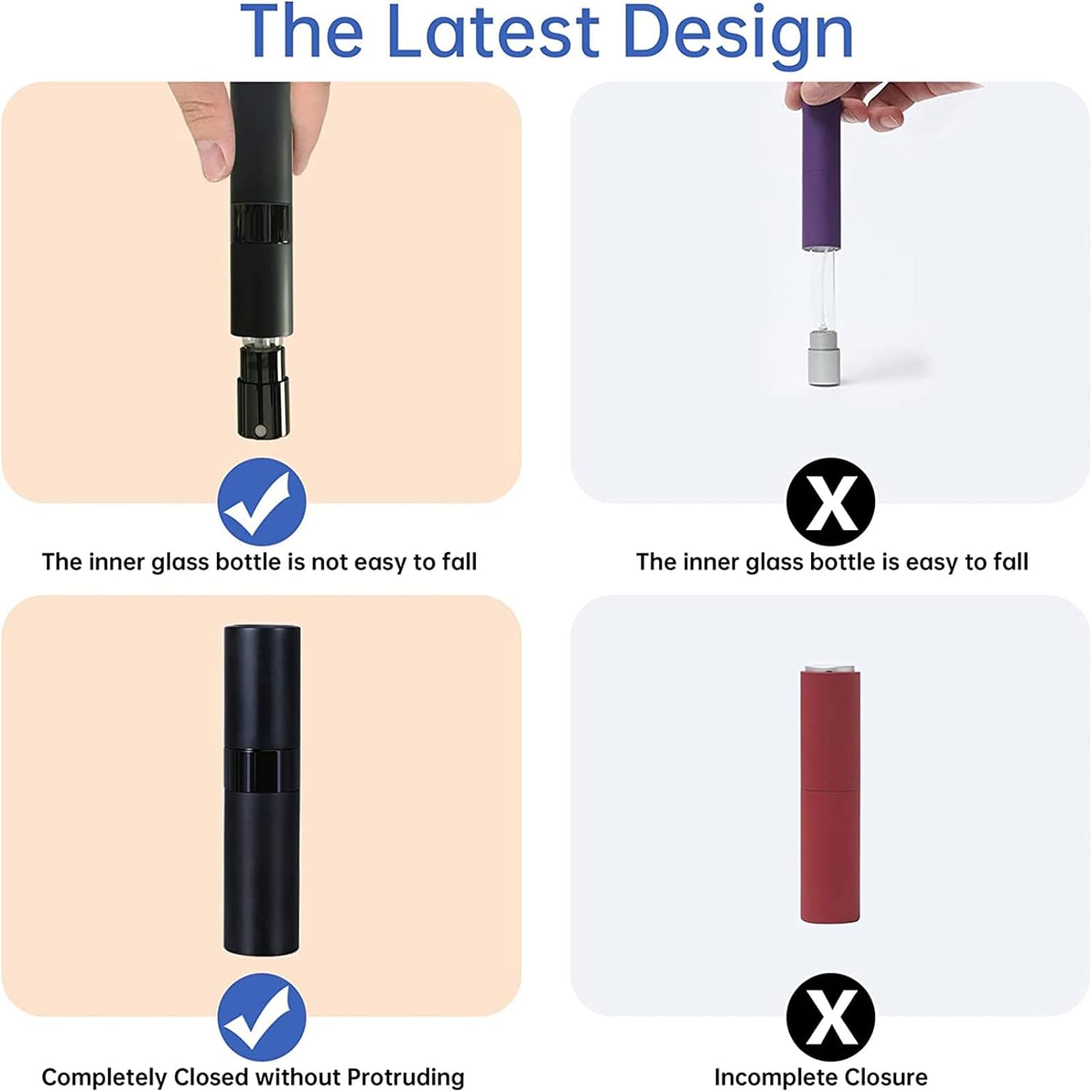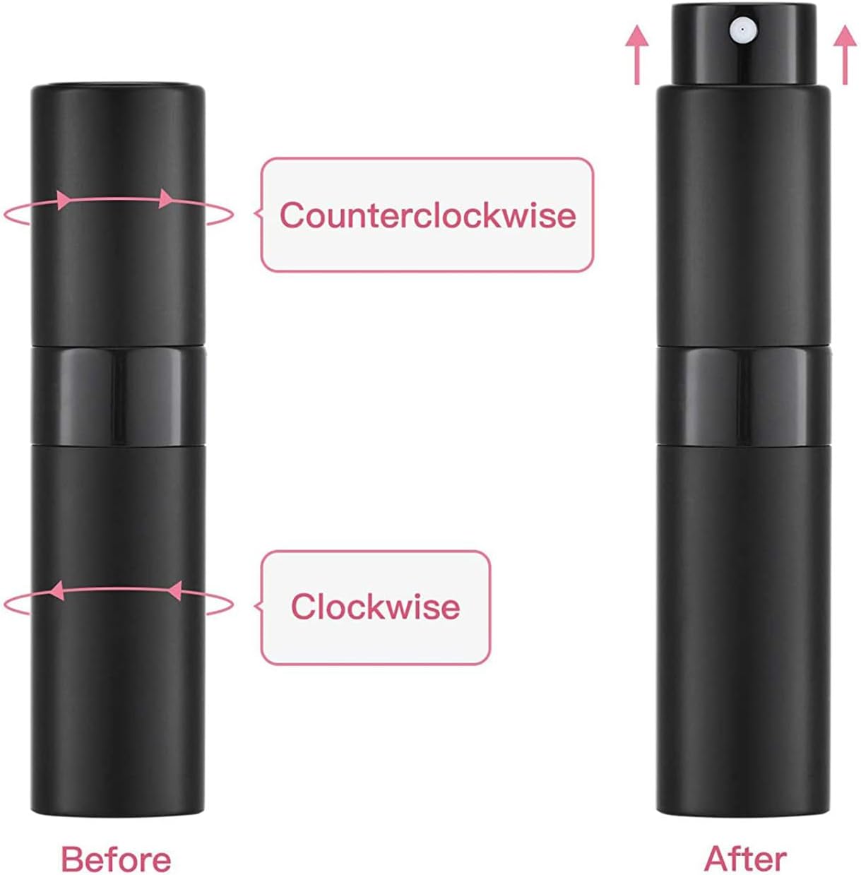 [Cap-Free&Leakproof]: Cap-Free Design - Turn the mini perfume refillable bottle clockwise like a lipstick tube, and the mouth of the bottle will come out, ready to use. Twist the travel cologne sprayer in the opposite direction to retract the mouth of the bottle. Unlike other perfume atomizer, our mini refillable perfume bottle has a very tight nozzle. You don't have to worry about the liquid inside the bottle evaporating or leaking over time.