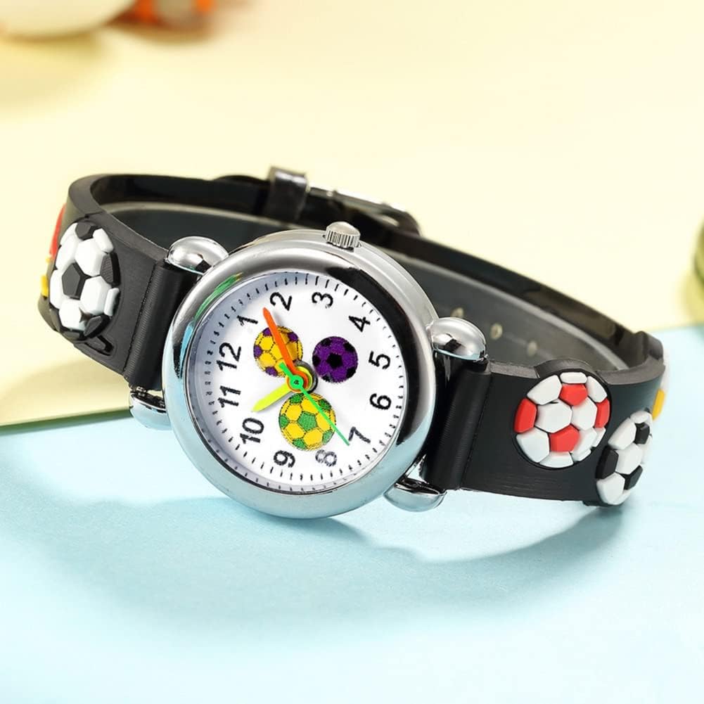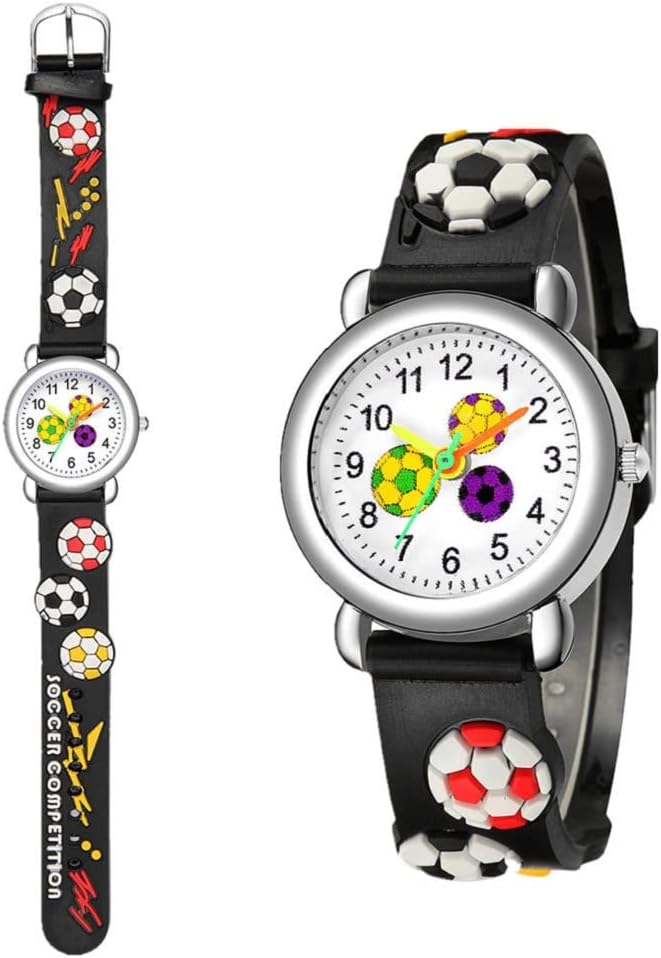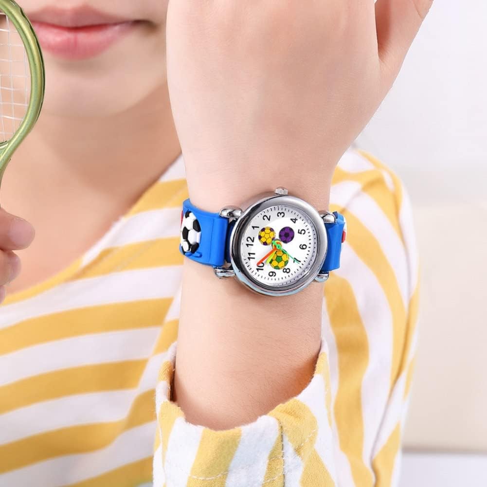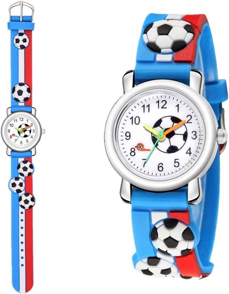 2 Packs Kids Watches for Boys 3D Football Cute Cartoon Silicone Children Toddler Wrist Watch Waterproof Time Teaching Easy to Read Watch