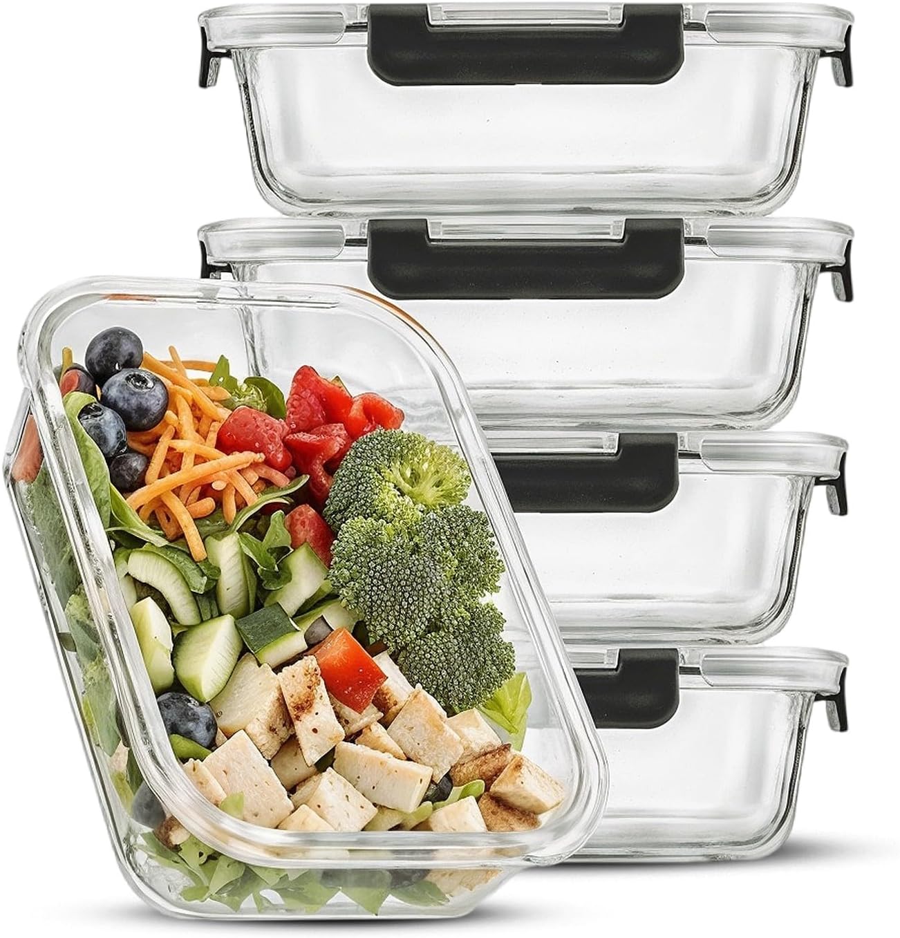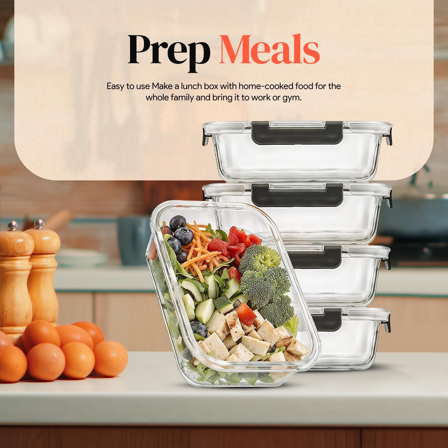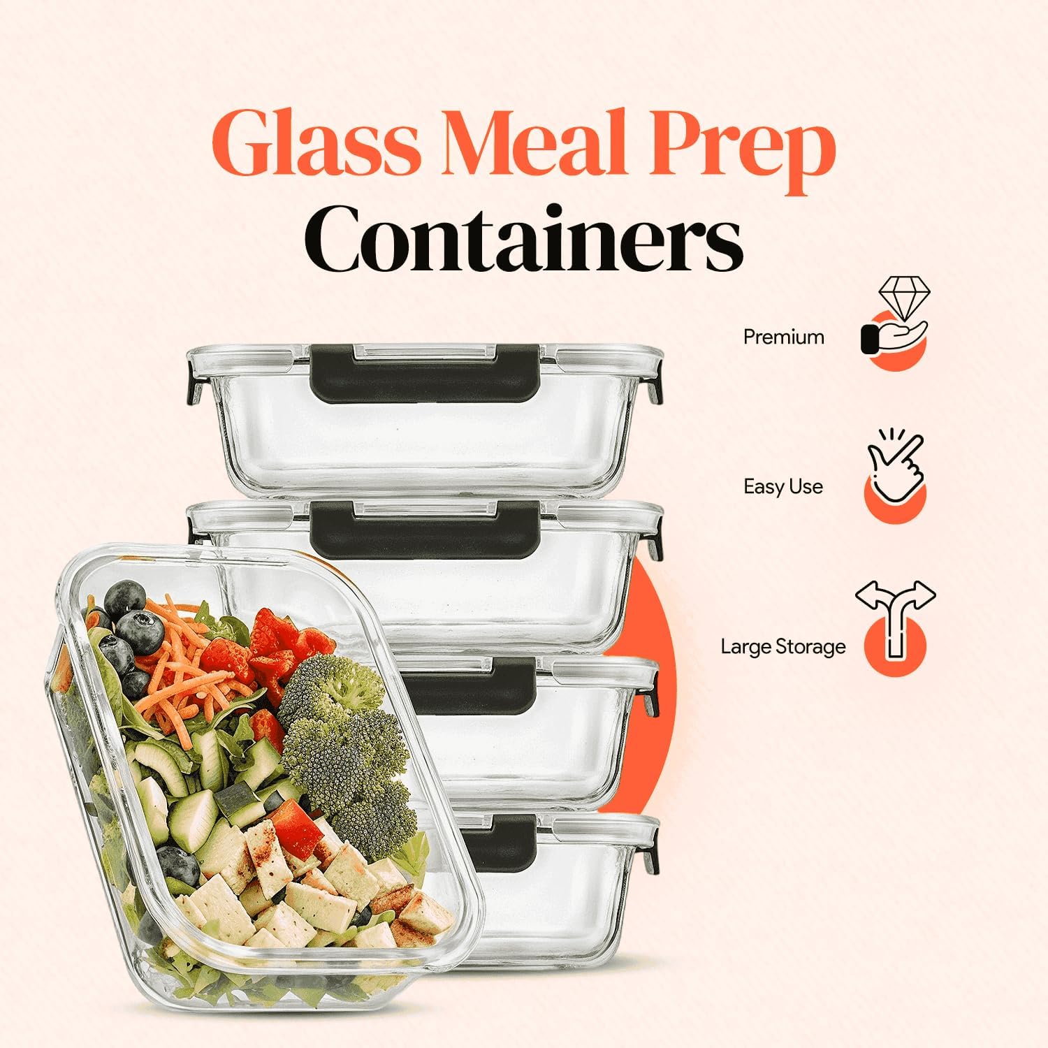 Versatile Meal Storage Containers: Our 5-pack glass food storage containers are designed to meet your meal prepping needs. You can easily portion your meals and keep them organized.